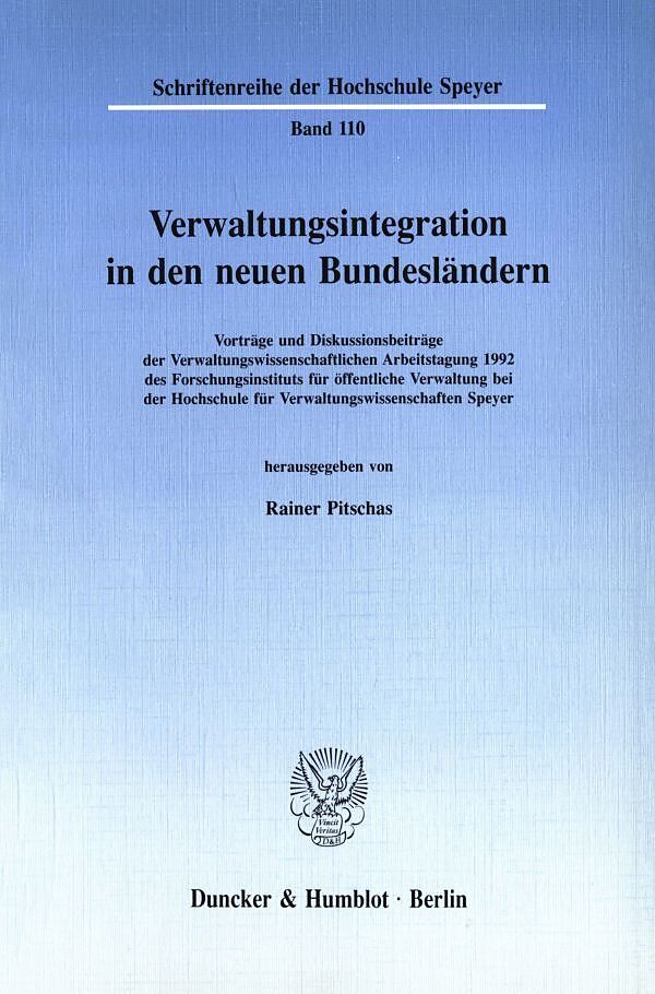Inhalt Inhalt: K. Rüter, Eröffnungsvortrag: Effizienz der von Rheinland-Pfalz für die neuen Bundesländer geleisteten Verwaltungshilfe - K. König, Die Transformation der öffentlichen Verwaltung: Ein neues Kapitel der Verwaltungswissenschaft - P. J. Tettinger, R...
