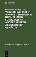 Keine ausführliche Beschreibung für "Verzeichnis der im Vorrat der Galerie befindlichen sowie der an andere Museen abgegebenen Gemälde" verfügbar. Inhalt Frontmatter -- VORWORT -- Achtschellinck - Lombardischer Meister -- Longhi - Zurbaran -- NACHTRA...