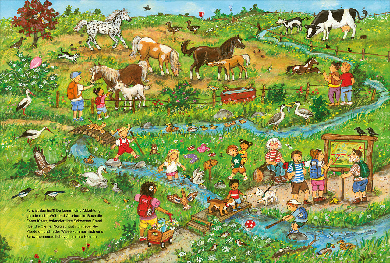 Draußen in der Natur gibt es so viel zu entdecken! Malia und ihr Cousin Felix machen mit ihren Familien eine Wanderung quer durch die Natur. Sie begegnen heimischen Tieren wie Feldhasen, Eichhörnchen und Störchen, wandern durch Wiesen, Felder und Wälder und ma...