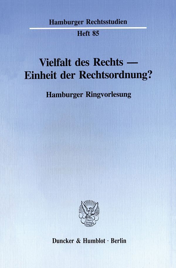 Die »Einheit der Rechtsordnung« ist seit Karl Engischs klassisch gewordener Antrittsvorlesung zu einer juristischen Parömie geworden. Sechzig Jahre danach hat sich der Fachbereich Rechtswissenschaft I der Universität Hamburg dieses Themas in einer im Wochentur...