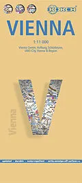Folienbeschichteter Stadtplans der österreichischen Hauptstadt mit einer Übersichtskarte von Wien, einem Plan des öffentlichen Nahverkehrsnetzes und Nebenkarten zu Schönbrunn, der Hofburg und der UNO City sowie einem umfangreichen Register zu Straßen, Parks, H...