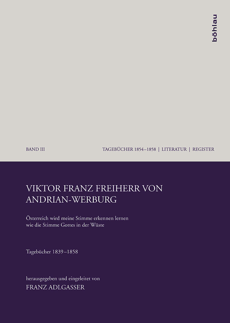Die Tagebücher von Viktor Franz Freiherr von Andrian-Werburg (1813-1858) führen durch sein Leben vom Idol der vormärzlichen Opposition zum Abgeordneten der Frankfurter Nationalversammlung, vom Berater der österreichischen Politik nach 1849 zum Verwaltungsrat k...