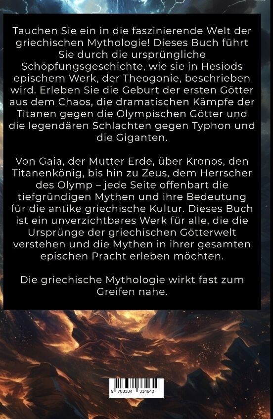 Schöpfungsmythos - Die Theogonie: Von Chaos zu Zeus - Die Ursprünge der griechischen Götterwelt Entdecken Sie die faszinierende Welt der griechischen Mythologie und die Ursprünge der Götter, wie sie in Hesiods Theogonie beschrieben werden. Dieses Buch bietet e...