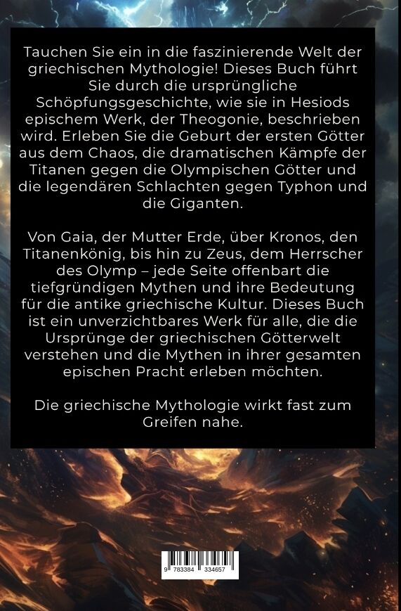Schöpfungsmythos - Die Theogonie: Von Chaos zu Zeus - Die Ursprünge der griechischen Götterwelt Entdecken Sie die faszinierende Welt der griechischen Mythologie und die Ursprünge der Götter, wie sie in Hesiods Theogonie beschrieben werden. Dieses Buch bietet e...