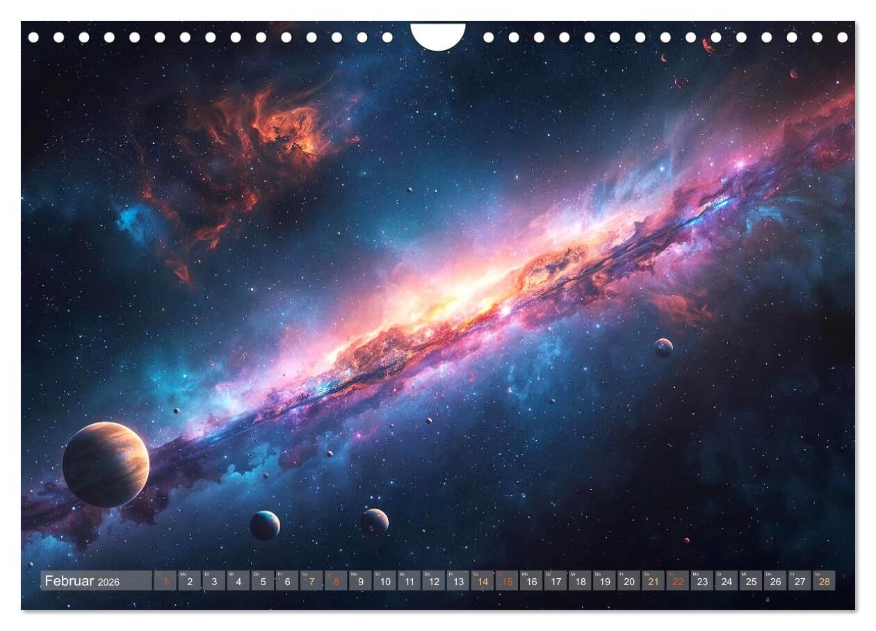 Kosmos der Träume Dein Kalender für neue Energie Tauche ein in ein Universum voller Magie, Farben und Licht! Unser einzigartiger KI-Weltall-Kalender entführt dich Monat für Monat in atemberaubende Fantasiewelten inspiriert von Sternennebeln, Galaxien und ferne...