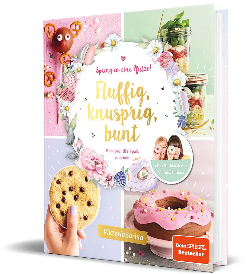Fluffig, knusprig, bunt - und lecker! Fans der "Spring in eine Pfütze!"-Reihe aufgepasst: Endlich gibt es das erste Kochbuch der YouTube-Stars ViktoriaSarina! Von Pizzastangen über Kaktus-Cake-Pops bis hin zur Einhorn-Torte - die Rezeptideen sind bunt, trendy...