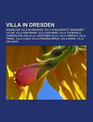 Quelle: Wikipedia. Seiten: 44. Kapitel: Ehemalige Villa in Dresden, Villa in Blasewitz, Dresdner Villen, Villa Hartmann, Villa San Remo, Villa Thorwald, Therese-Malten-Villa, Grützner-Villa, Villa Tiberius, Villa Trinkl, Villa Ilgen, Villa Friedrichsruh, Villa...Quelle: Wikipedia. Seiten: 44. Kapitel: Ehemalige Villa in Dresden, Villa in Blasewitz, Dresdner Villen, Villa Hartmann, Villa San Remo, Villa Thorwald, Therese-Malten-Villa, Grützner-Villa, Villa Tiberius, Villa Trinkl, Villa Ilgen, Villa Friedrichsruh, Villa Marie, Villa Orlando, Villa Rautendelein, Villa Martha, Villa Weigang, Villa Fliederhof, Villa Niederwaldstraße 2, Villa Wollner, Villa Zietz, Villa Haniel, Villa Rosa, Villa Rübsamen, Villa Möckel, Villa Marienlust, Villa Wiener Straße 2, Villa Fallnichtein, Villa Goethestraße 6, Villa Eschebach, Villa Vogesenweg 4, Villa Westendstraße 21, Villa Maria, Villa Schau ins Land, Villa Meßmacher, Villa Stock, Seebachsches Haus, Haus Beuststraße 1, Villa Caspar-David-Friedrich-Straße 3, Villa Goethestraße 13, Villa Grübler, Haus Antonstraße 8, Villa Häbler, Villa Parkstraße 3, Comeniusstraße 32, Villa Pilz, Villa Parkstraße 2/Goethestraße, Villa Wilder-Mann-Straße 29, Villa Müller, Villa Wiener Straße 36, Villa Goethestraße 1/Parkstraße, Villa Wiener Straße 11, Villa Wiener Straße 32, Villa Scheidemantel, Haus Bautzner Straße 125, Villa Käthe-Kollwitz-Ufer 92, Artushof, Pernwaldhaus, Villa Parkstraße 9, Villa Wiener Straße 22, Villa Karcherallee 11, Villa Würzburger, Schloss Eckberg, Villa Mozartstraße 6. Auszug: Als Dresdner Villen wird die weiträumige Bebauung Dresdens durch Villenkolonien bezeichnet. Diese Viertel bilden neben der geschlossenen Bebauung der Dresdner Vorstädte und der Gartenstädte ein baugeschichtliches Zeugnis der Gründerzeit und Belle Époque, werden aber bis in die Gegenwart auch neu bebaut. Blasewitz und Loschwitz/Weißer Hirsch sind besonders bekannte Villenkolonien Dresdens. Blasewitz in der Ebene des Elbtalkessels mit seinen schachbrettförmigen Straßenverläufen und Loschwitz und der Weiße Hirsch am Elbhang im HintergrundDie Strukturen der Villenstadtteile in Dresden sind durchaus unterschiedlich. Teilweise sind die Villenkolonien der Landschaft angepasst, planvoll strukturiert oder an den historischen dörflichen Strukturen angelegt. Die Kolonien sind darüber hinaus teilweise stadtteilübergreifend. Entlang der Dresdner Elbhänge ziehen sich die Villenkolonien in den nordöstlichen Stadtteilen Radeberger Vorstadt (insbesondere Preußisches Viertel und Waldschlösschenviertel), Weißer Hirsch, Bühlau, Loschwitz und Wachwitz entlang der Bautzner Straße in einer Art Landschaftspark zwischen Dresdner Heide und Dresdner Elbtal. Im Zentrum dieser Kette entlang der Elbe stehen die Elbschlösser. Die Anordnung der Bebauung und der Verlauf der Straßen folgt hier der natürlichen Gegebenheit. Durch Stadtteile im Dresdner Nordwesten unterbrochen setzt sich diese Art der Hangbebauung in Radebeul in den dortigen Stadtteilen Oberlößnitz und Niederlößnitz fort. Benachbart und östlich der Lößnitz befinden sich die Villenviertel von Trachenberge insbesondere am Wilden Mann. Ebenfalls am Waldrand der Dresdner Heide, aber vom Elbtal entfernt liegt der Villenstadtteil Klotzsche im Norden, der ähnlich wie der Weiße Hirsch bestrebt war, Kurort zu werden. Luftaufnahme von Tolkewitz, Blasewitz (dessen Zentrum links vom Blauen Wunder liegt), Striesen, Gruna und der JohannstadtIn der Ebene am gegenüberliegenden südlichen Elbufer liegen schachbrettförmig angelegte Viertel wie Blasewitz,