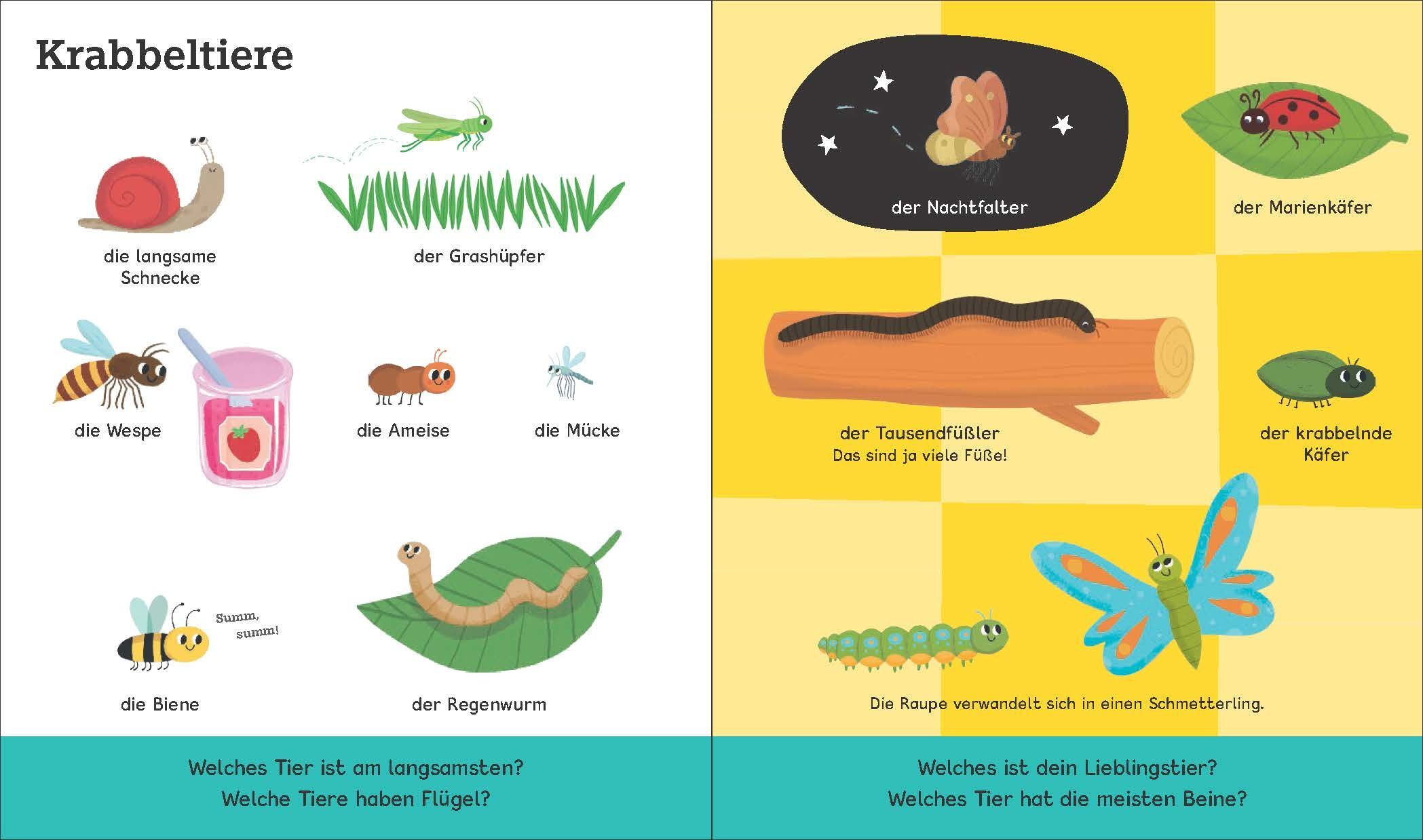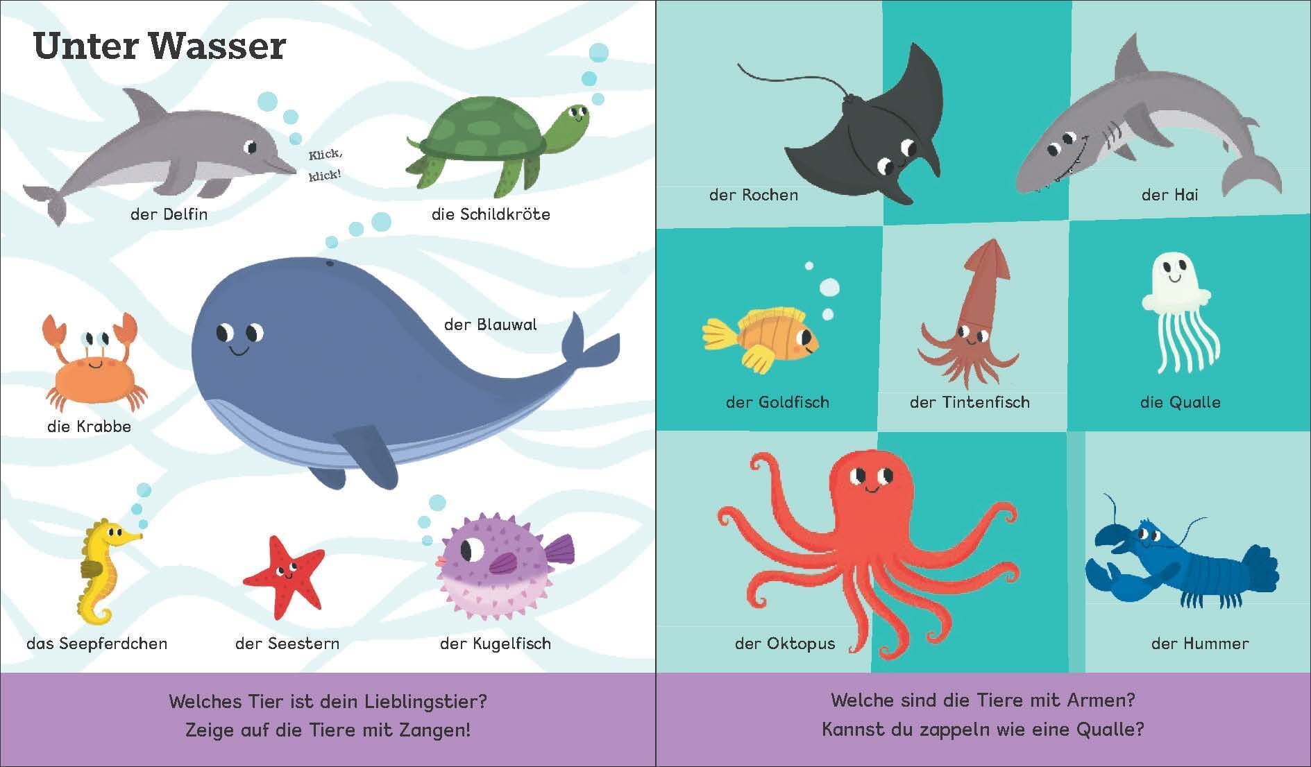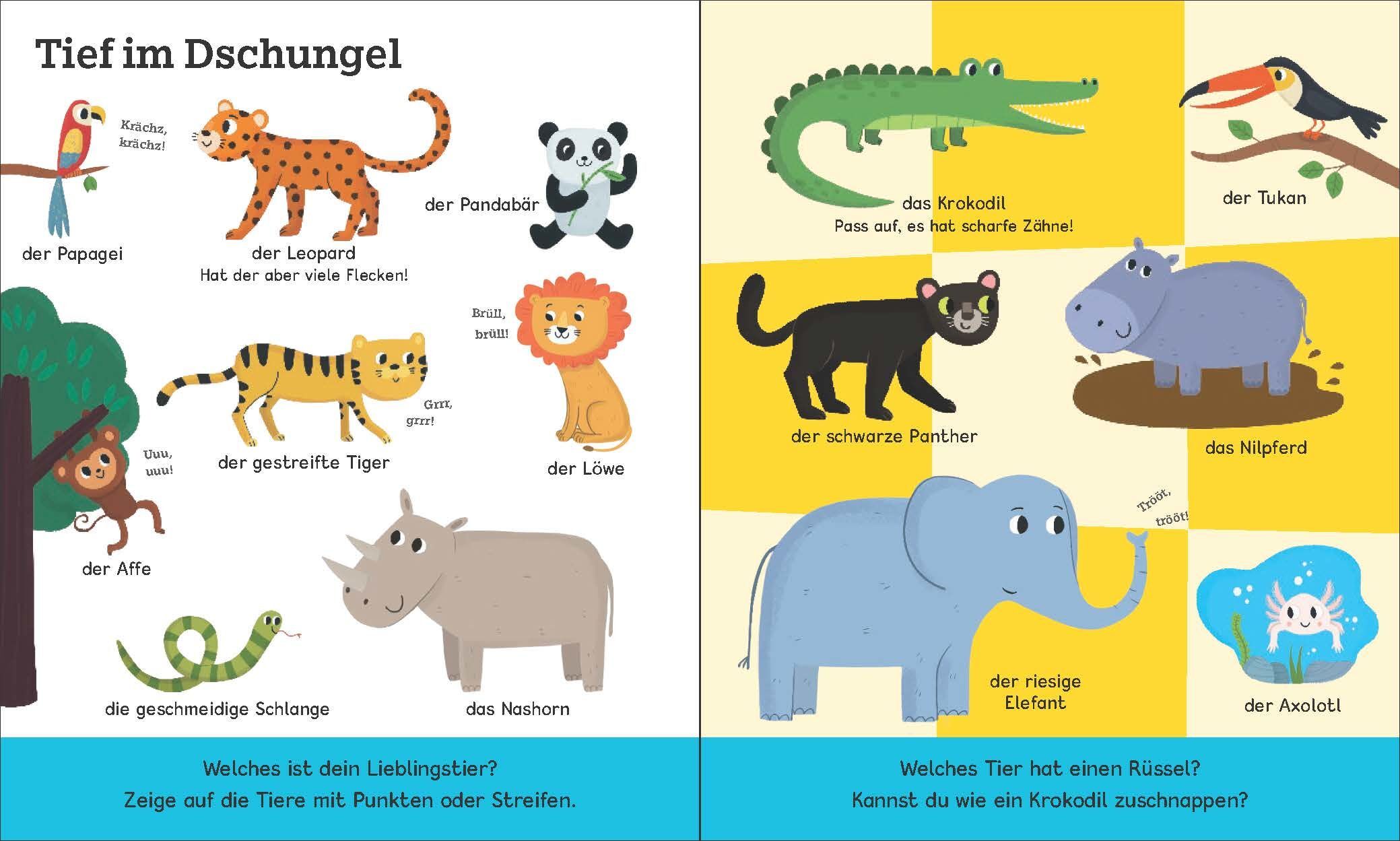 Ganz einfach sprechen lernen Finde die schönsten Tiere aus aller Welt auf vielen bunten Doppelseiten: Auf dem Bauernhof, im Wald, im Dschungel, in der Kälte, in der Hitze, im Wasser Tiere mit Hufen, mit Tatzen, mit Flügeln und Flossen oder mit vielen kleinen K...
