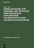 Keine ausführliche Beschreibung für "Überlegungen zur Theorie und Methode der historisch-synchronen Valenzsyntax und Valenzlexikographie" verfügbar. Klappentext In der Reihe Lexicographica. Series Maior erscheinen schwerpunktmäßig Monographien und Sa...