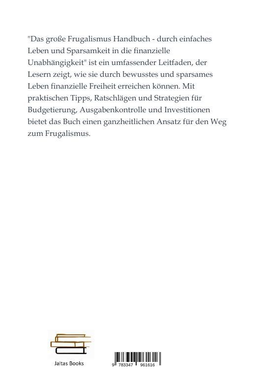 "Das große Frugalismus Handbuch - durch einfaches Leben und Sparsamkeit in die finanzielle Unabhängigkeit" ist ein umfassender Leitfaden, der Lesern zeigt, wie sie durch bewusstes und sparsames Leben finanzielle Freiheit erreichen können. Mit praktischen Tipps...