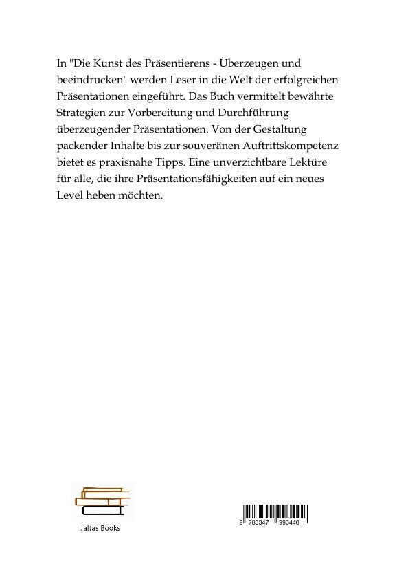 In "Die Kunst des Präsentierens - Überzeugen und beeindrucken" werden Leser in die Welt der erfolgreichen Präsentationen eingeführt. Das Buch vermittelt bewährte Strategien zur Vorbereitung und Durchführung überzeugender Präsentationen. Von der Gestaltung pack...