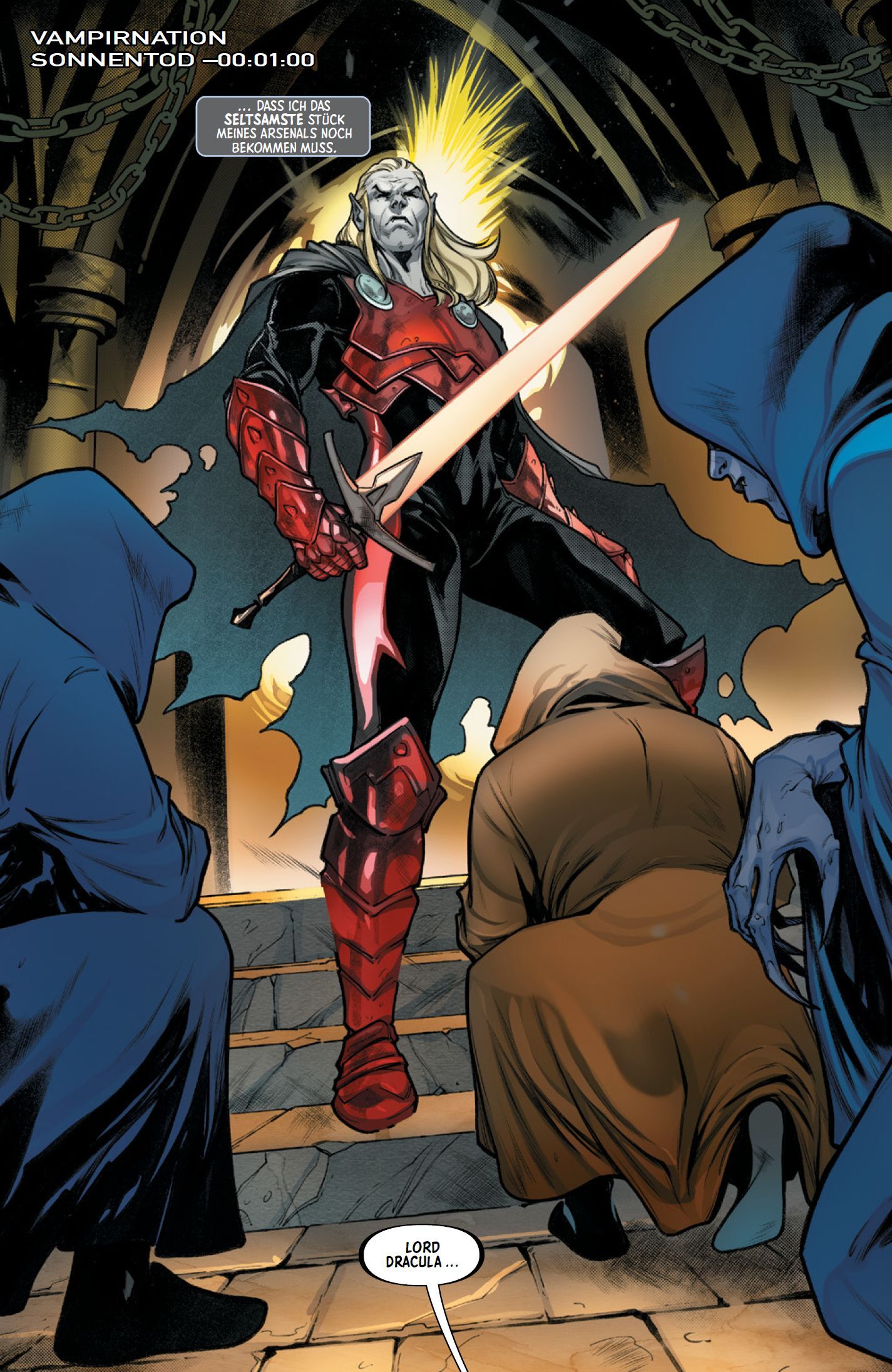 Storys zum Marvel-Event "Blood Hunt". Mit Dracula und Jack the Ripper. GROSSANGRIFF DER BLUTSAUGER! Blade und seine Vampir-Horden haben die Welt in Finsternis gestürzt. Dracula muss Blades Tochter Brielle von einer Zusammenarbeit überzeugen und dafür erst einm...