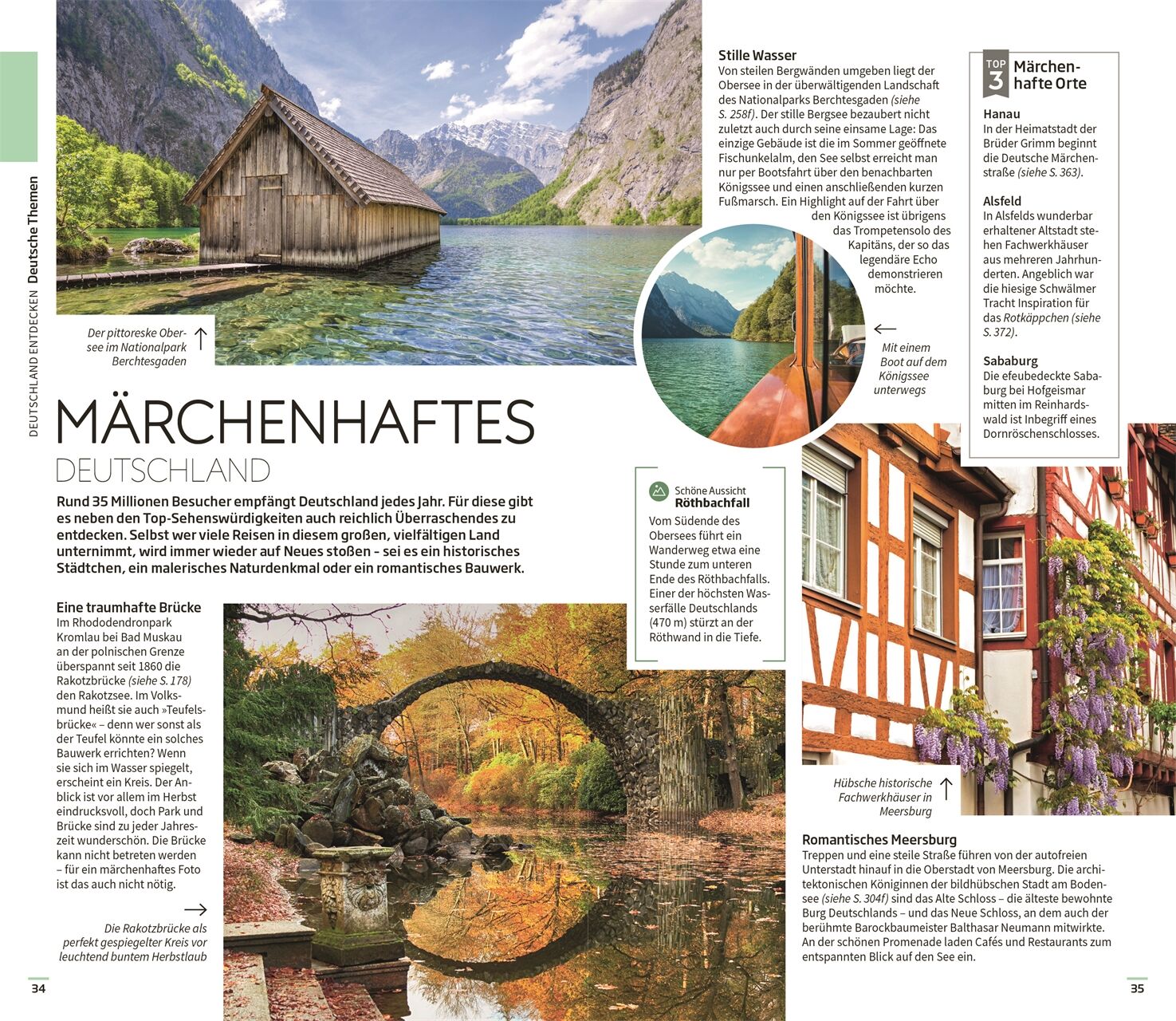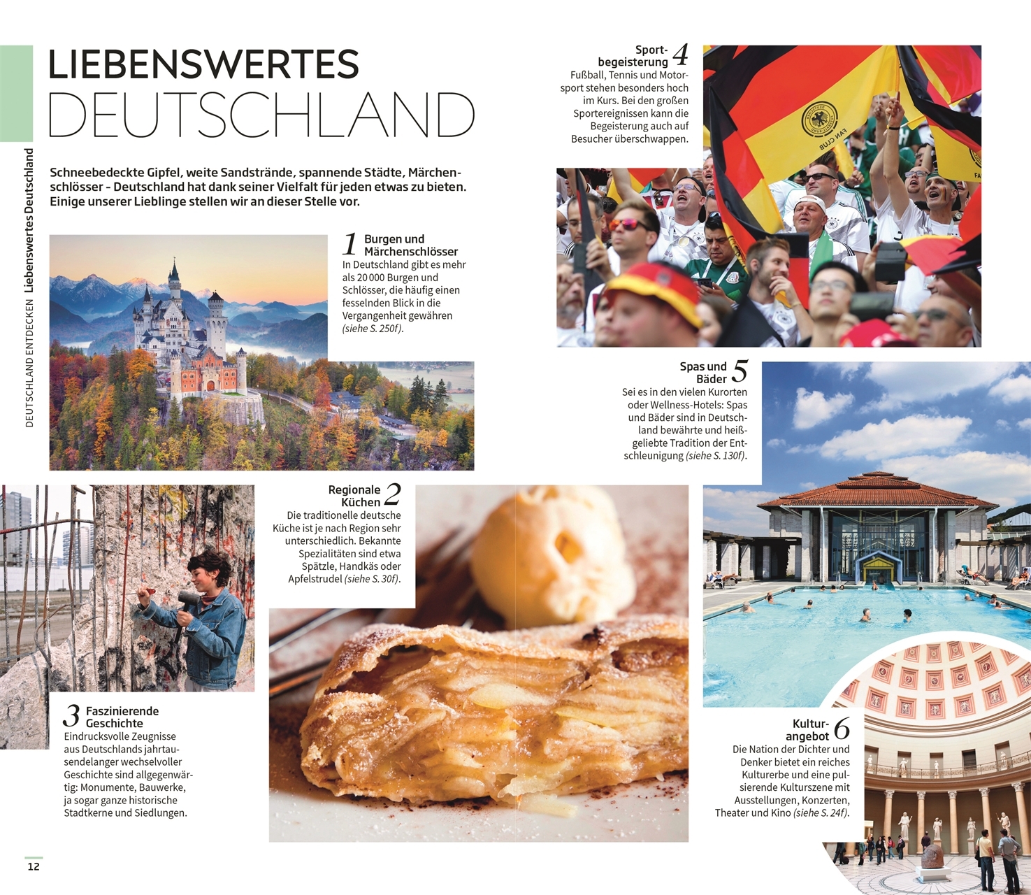 • Ausgewählte Top-Themen: Auf den bildgewaltigen Themenseiten des Deutschland-Reiseführers stehen charakteristische Besonderheiten im Fokus. Entdecken Sie eindrucksvolle Architektur von romanischen Kirchen bis zu modernen Hochhäusern, das kulturelle Erbe der Dichter und Denker von Goethe bis Schiller oder das märchenhafte Deutschland, von malerischen Naturdenkmälern bis zu romantischen Bauwerken.