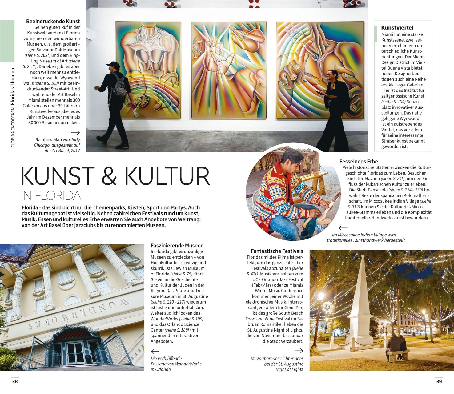 • Unvergessliche Spaziergänge: Entlang beeindruckender Sehenswürdigkeiten spazieren und dabei alles Wichtige über Architektur, Kirchen, Museen oder Plätze erfahren: Handgezeichnete Spaziergänge nehmen Sie mit auf eine erlebnisreiche Route zum Beispiel durch Miamis Art-déco-Viertel South Beach oder das historische Zentrum von St. Augustine, Amerikas älteste von Europäern besiedelte Stadt.