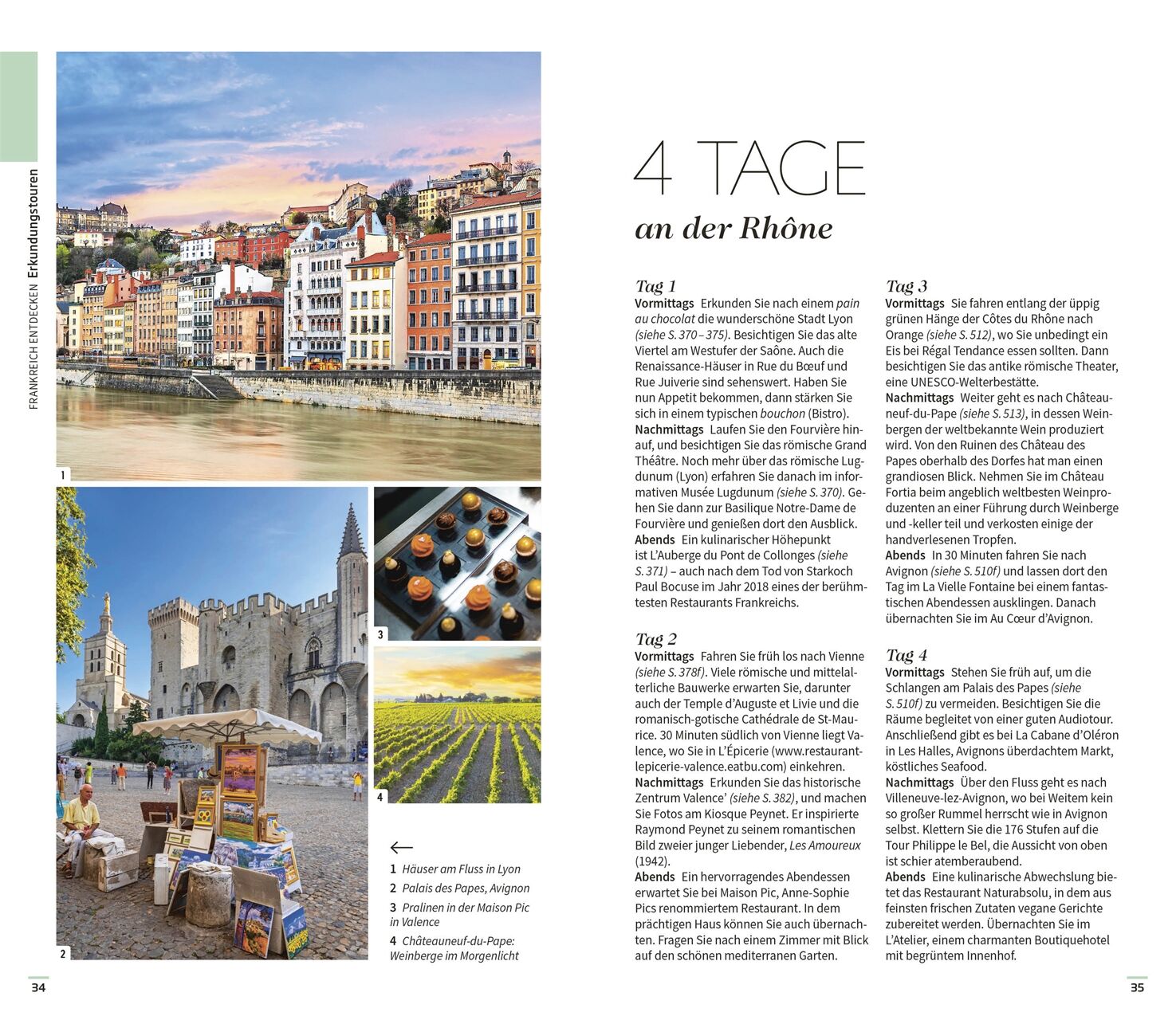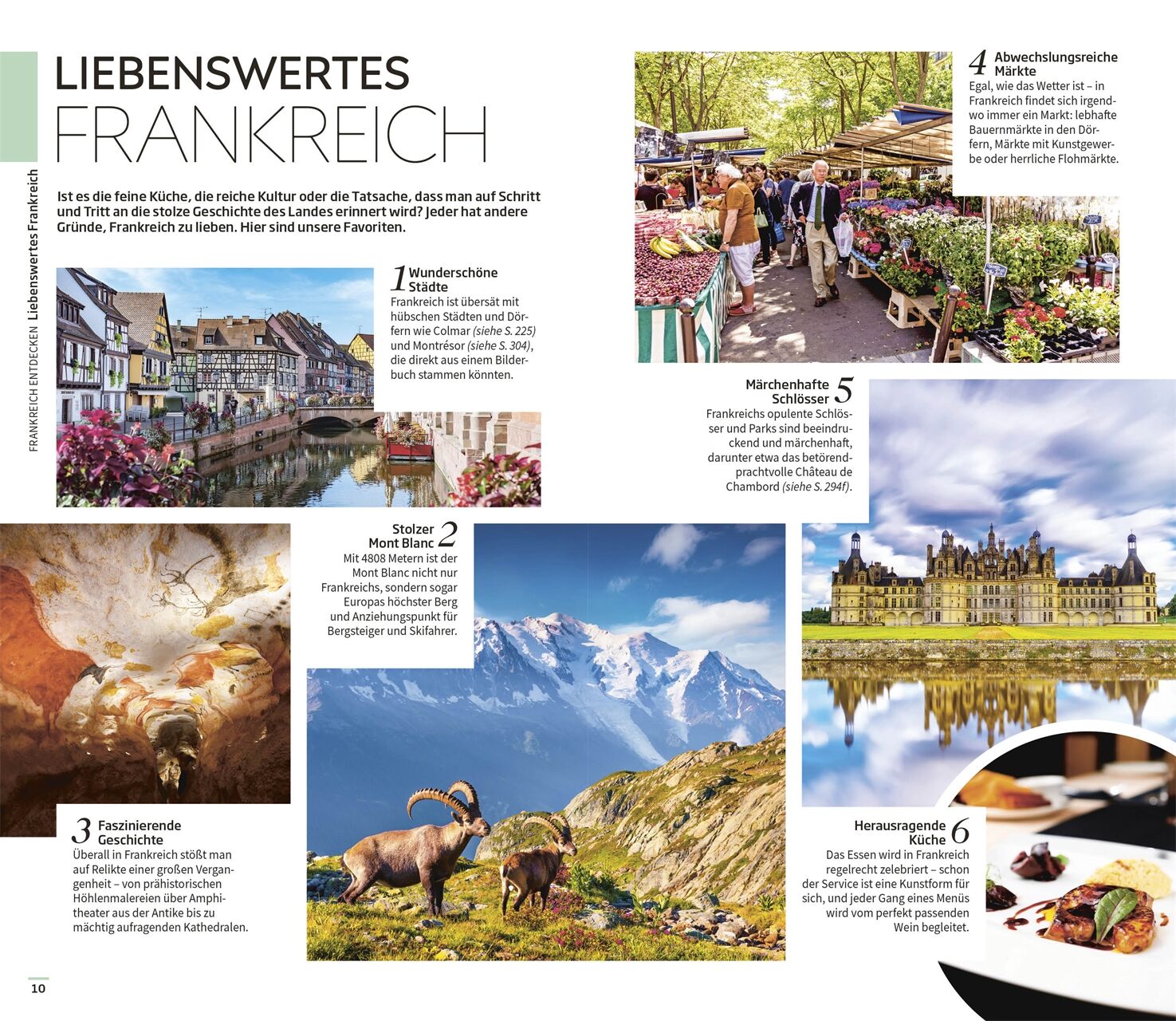 Ausgewählte Top-Themen: Auf den bildgewaltigen Themenseiten des Frankreich-Reiseführers stehen charakteristische Besonderheiten im Fokus. Lernen Sie die beliebteste Musikform des Landes, den Chanson, oder die beeindruckende Geschichte Frankreichs kennen. Auch Kunstfans kommen nicht zu kurz: Sehen Sie mit eigenen Augen die herrlichen Landschaften, die Cézanne, Picasso oder van Gogh zu Meisterwerken inspirierten oder besuchen Sie einige der besten Museen der Welt.