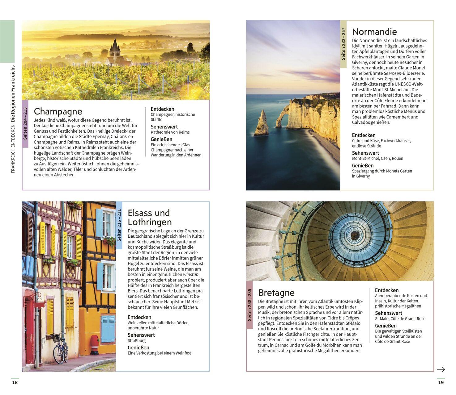 Die schönsten Regionen: In diesem Frankreich-Reiseführer stellen sich Ihnen die fabelhaftesten Gegenden des Landes in ihrer gesamten Pracht vor randvoll mit fundierten Informationen und besonderen Highlights aus Kultur und Alltag. Wo soll die Frankreich-Reise hingehen? In 17 Kapiteln mit jeweils eigener Farbcodierung werden die verschiedenen Regionen präsentiert: von der Provence und Cote d'Azur im Süden über das Massif Central, Burgund oder die Champagne bis zur Bretagne und Normandie im Norden. Nicht zu vergessen Korsika, die wilde, schöne Insel mit endlos scheinenden goldenen Sandstränden. Auch die Hauptstadt Paris wird in einem Extrakapitel ausführlich vorgestellt.