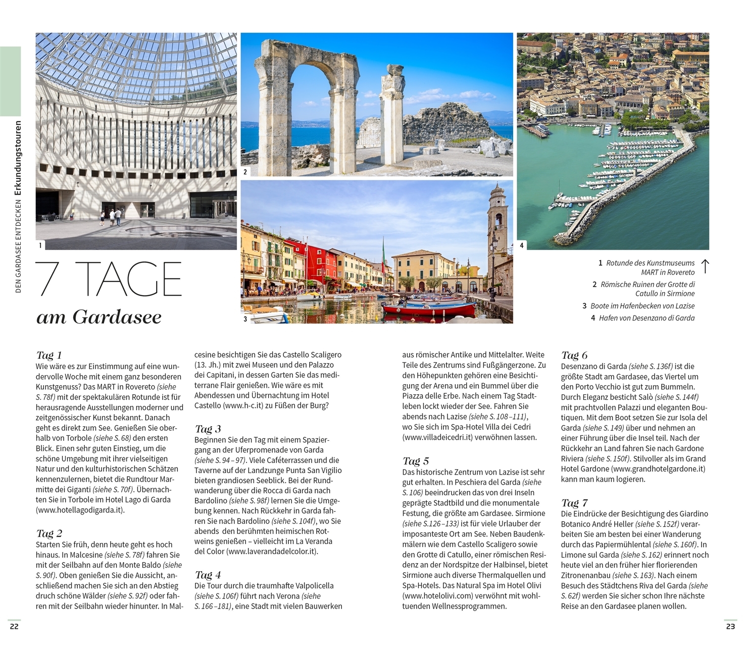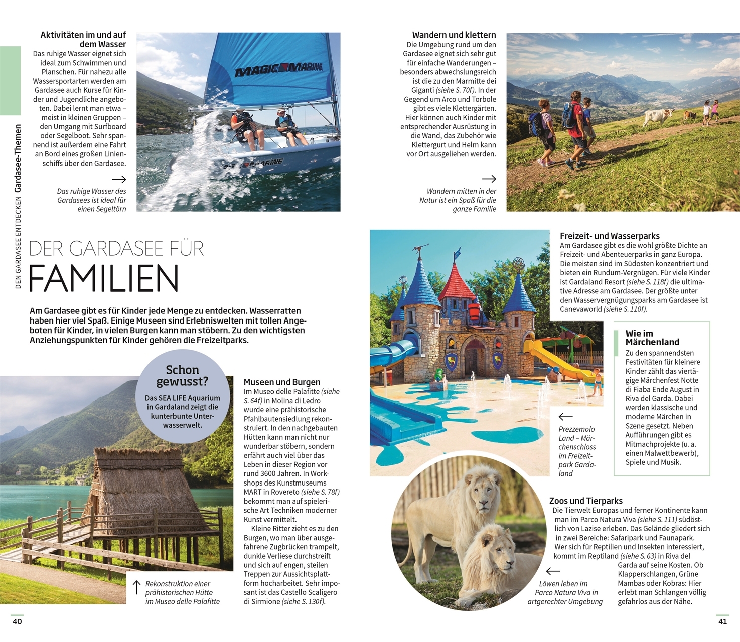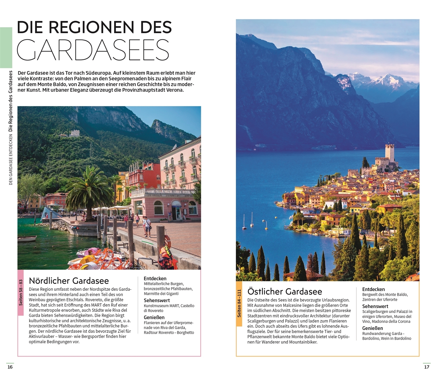 • Ausgewählte Top-Themen: Auf den bildgewaltigen Themenseiten des Bodensee-Reiseführers stehen charakteristische Besonderheiten im Fokus. Erkunden Sie die vielfältigen Outdoor- und Wassersport-Möglichkeiten und Familien-Angebote des Gardasee. Auch Foodies und Shopping-Fans sowie Wein- und Wellnessliebhaber kommen hier auf ihre Kosten.