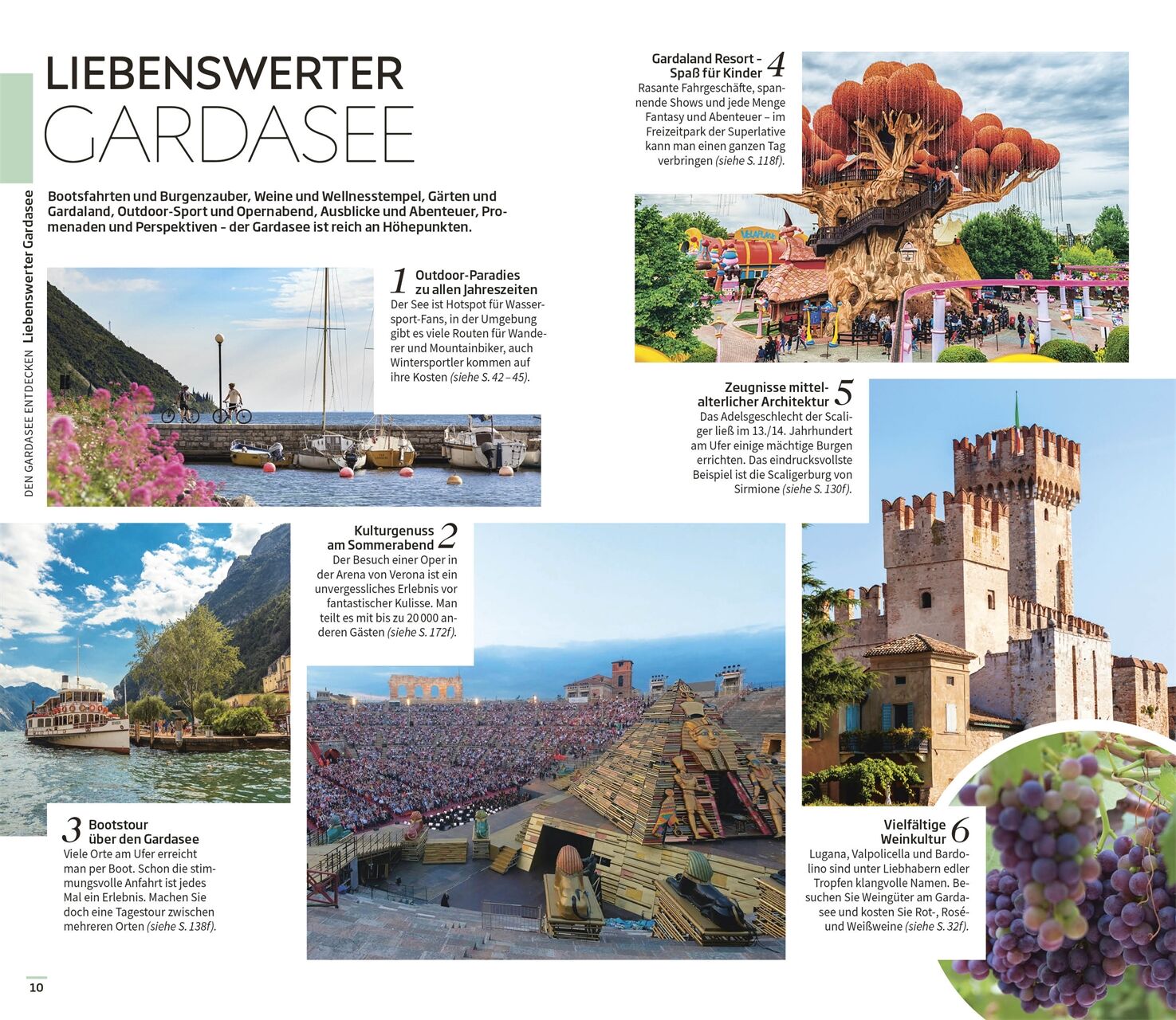Zwischen Sandstränden und schroffen Bergwelten wandern, die mächtigen Burgen am Seeufer bestaunen oder eine Oper in der Arena von Verona besuchen: Lassen Sie sich vom Vis-à-Vis Reiseführer Gardasee zu den wichtigsten Sehenswürdigkeiten und beeindruckendsten Orten der Region führen. Mit fundiertem Expertenwissen, inspirierenden Fotos und detaillierten Karten stellt Ihnen der übersichtliche Reiseführer die schönsten Gegenden, Städte und Ausflugsziele rund um den Gardasee mit allen Attraktionen vor vom nördlichen Gardasee mit seinen steil aufragenden Berghängen und Wander- und Outdoor-Paradiesen bis zu den sanften Hügeln mit Weinbergen und Olivenhainen im lieblichen Süden. Ob für ein Wochenende, eine Woche oder länger hier finden Sie passende Reiserouten und Empfehlungen für Aktivitäten, Restaurants und Hotels, um das Beste aus Ihrem Gardasee-Urlaub herauszuholen!