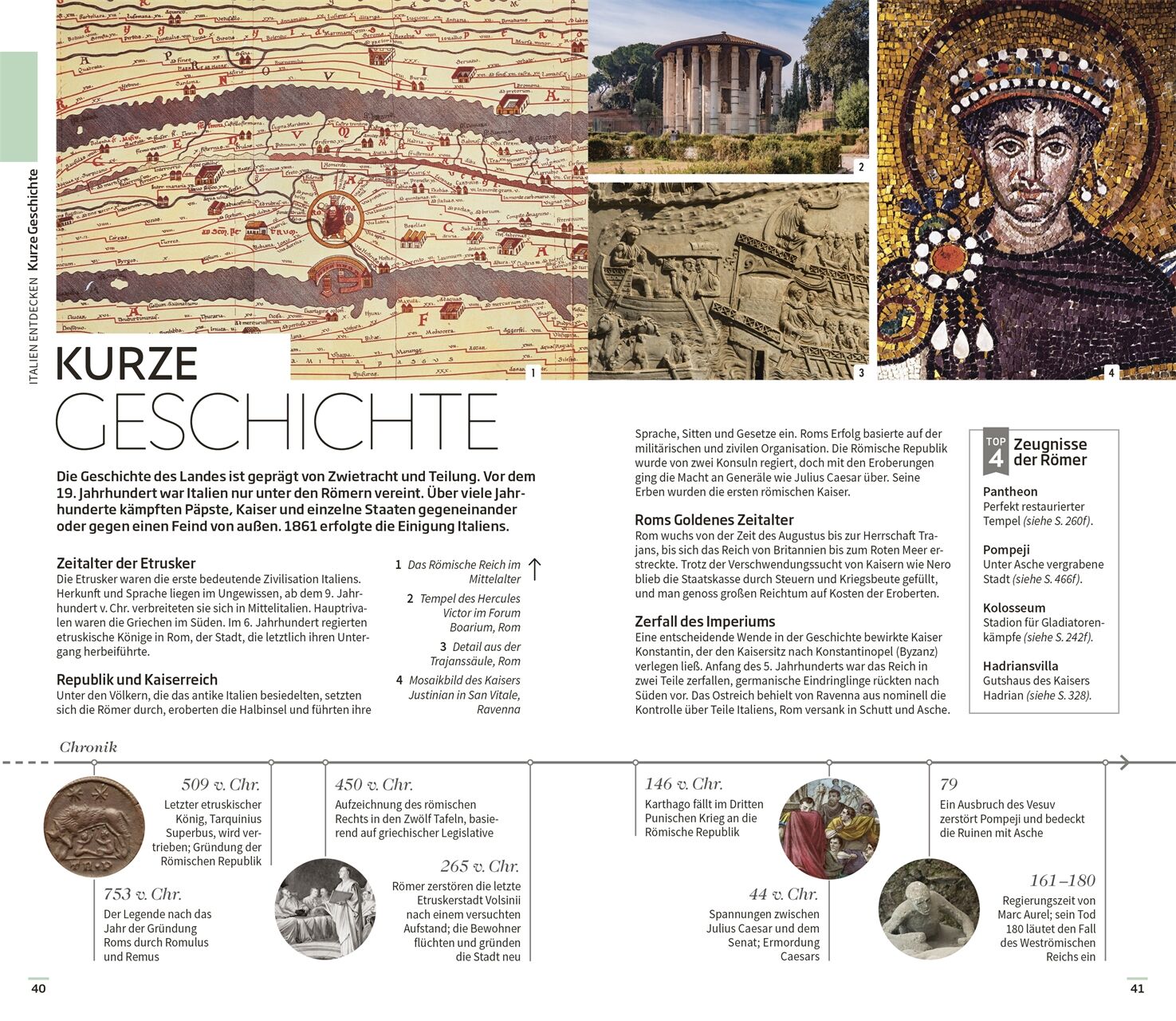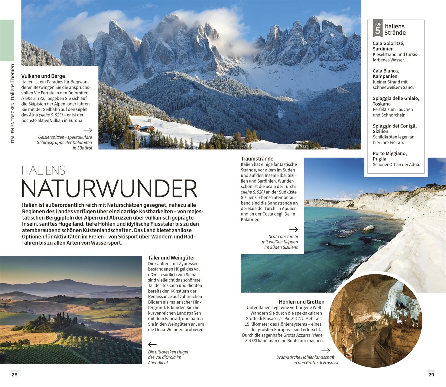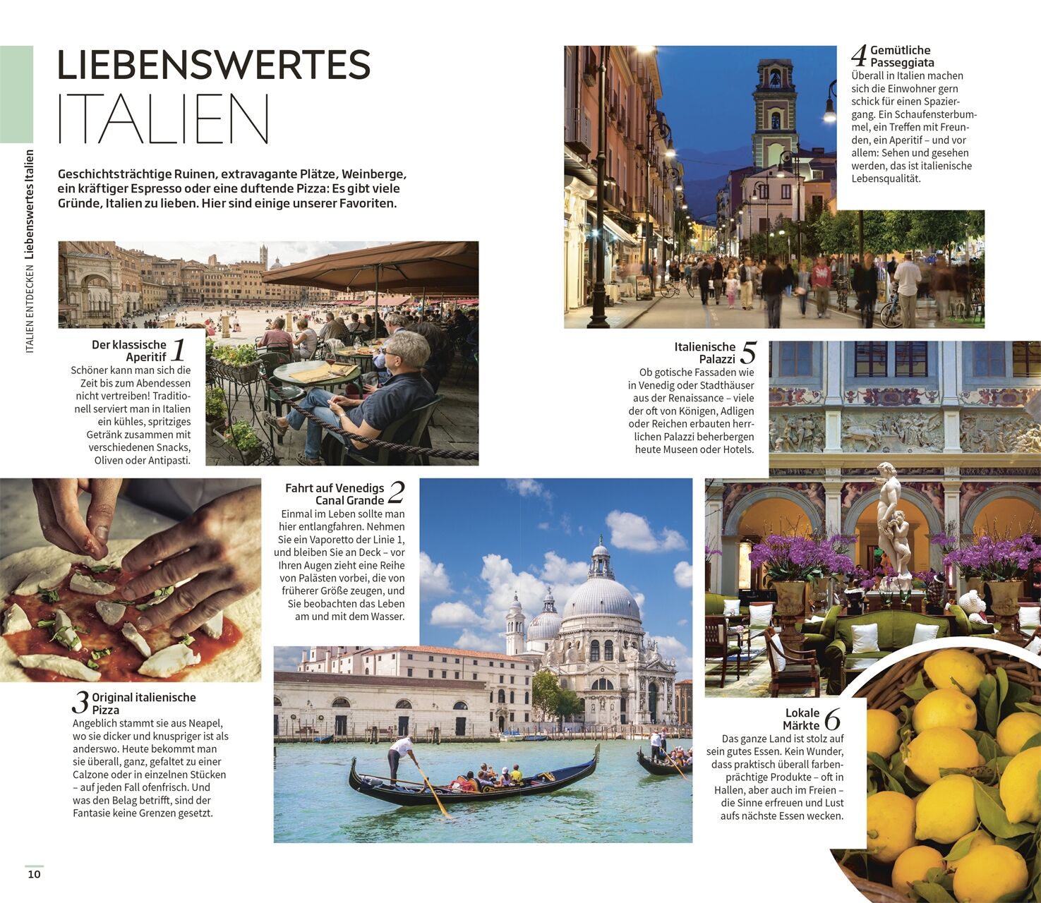 • Ausgewählte Top-Themen: Auf den bildgewaltigen Themenseiten des Italien-Reiseführers stehen charakteristische Besonderheiten im Fokus. Entdecken Sie Italiens schönste Strände, einzigartige architektonische Baukunst oder die exzellente italienische Küche, die in jeder Region ihre eigenen Spezialitäten hervorbringt.