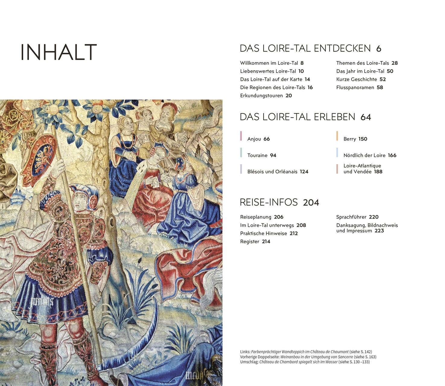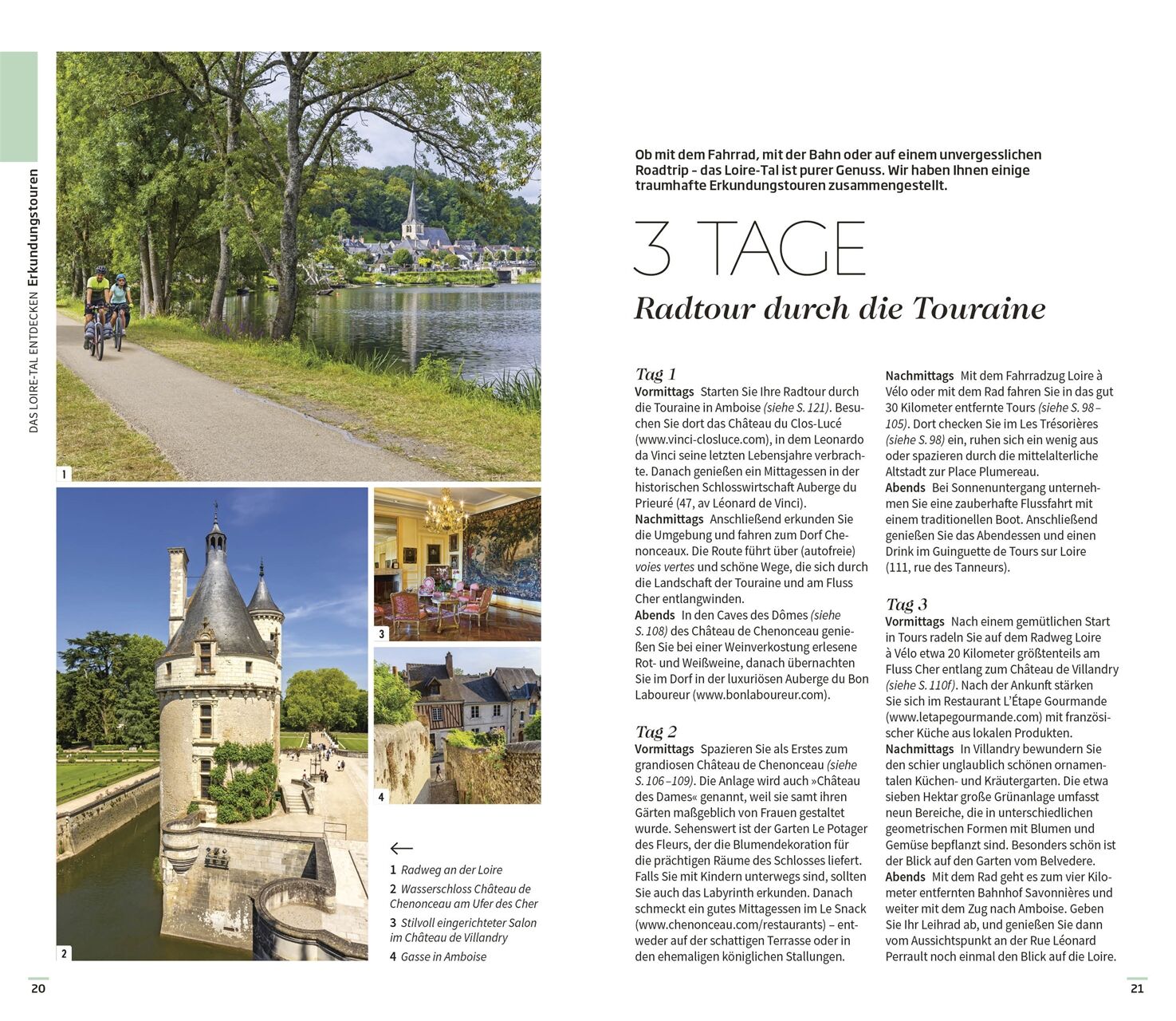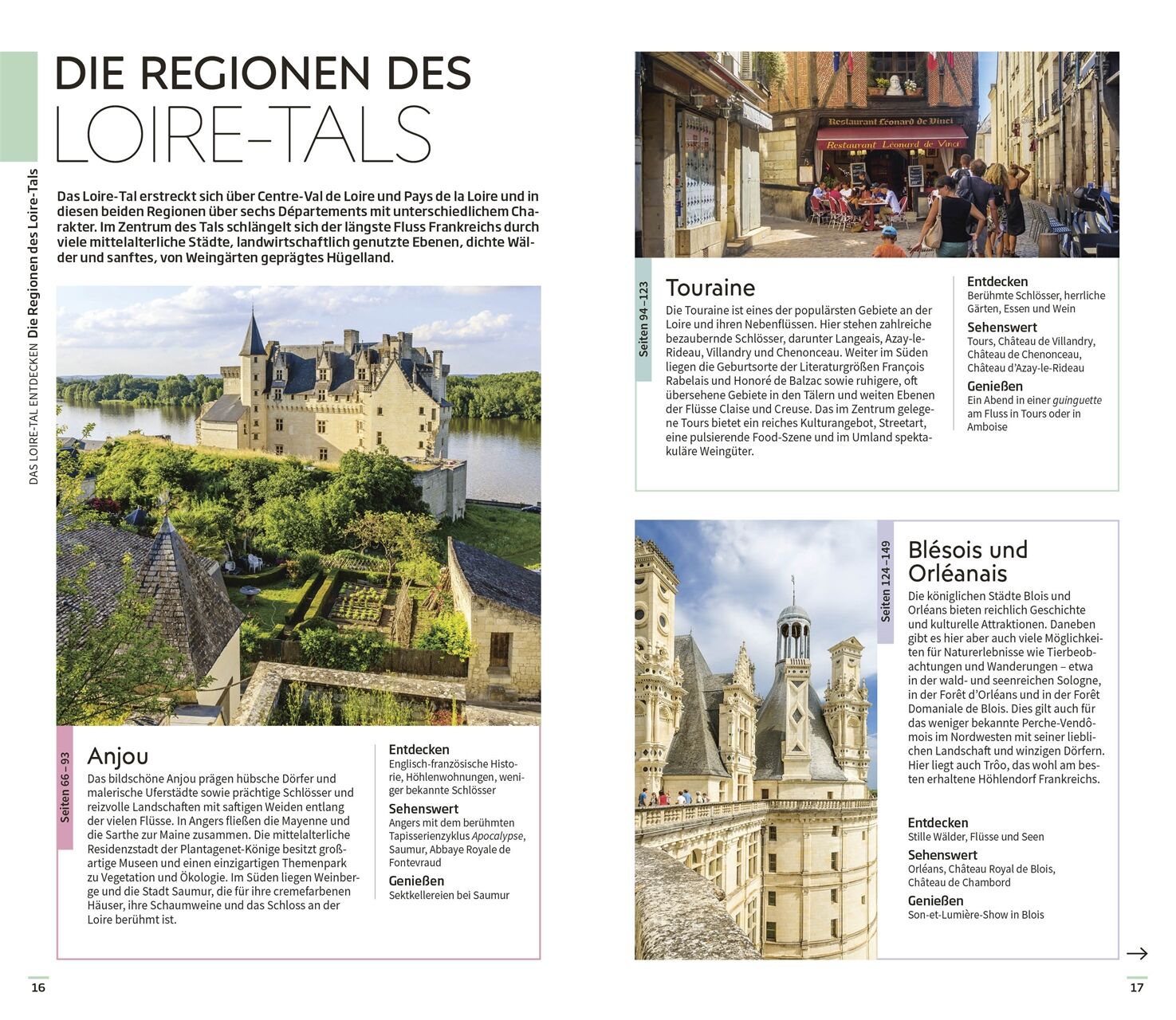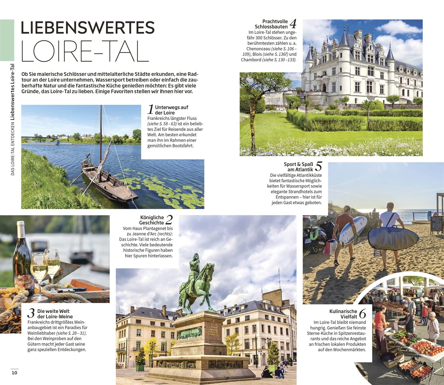 • Ausgewählte Top-Themen: Auf den bildgewaltigen Themenseiten des Reiseführers stehen charakteristische Besonderheiten im Fokus. Erleben Sie die reiche Weintradition, die zauberhaften Gärten, die kulinarischen Genüsse und die vielfältigen Outdoor-Aktivitäten im Loire-Tal.