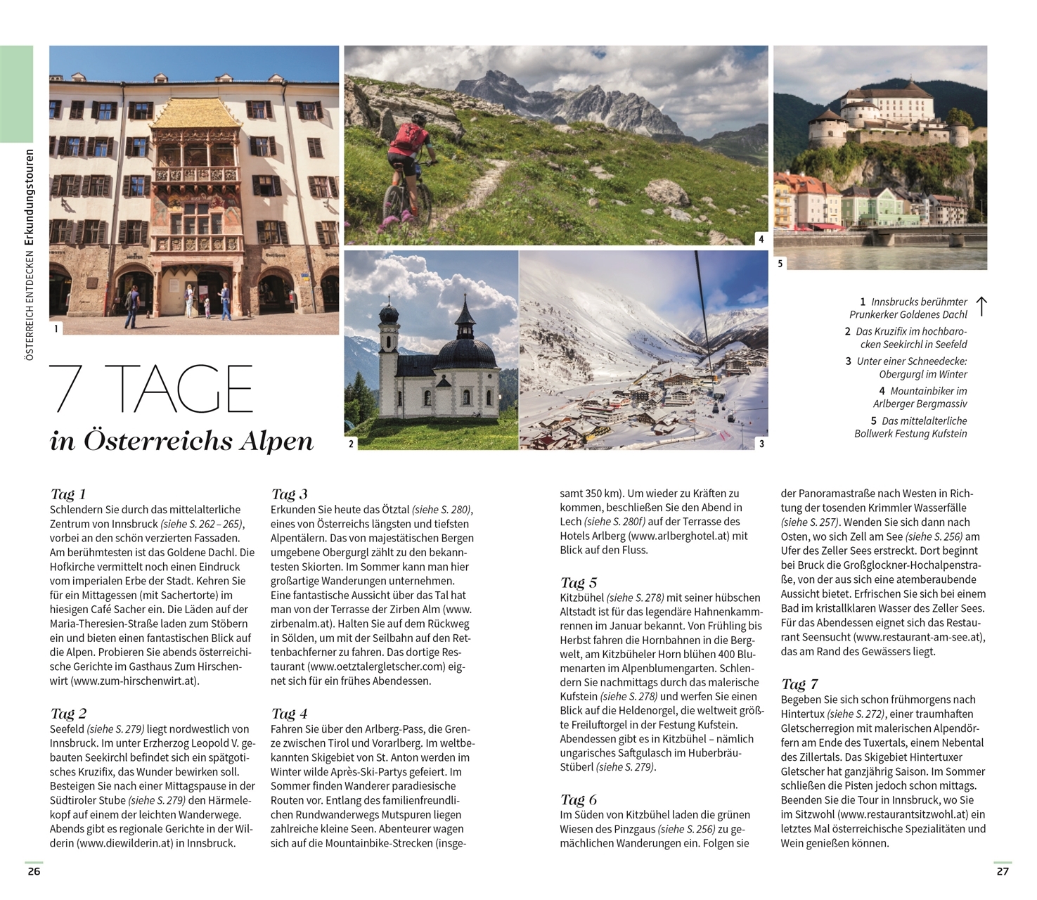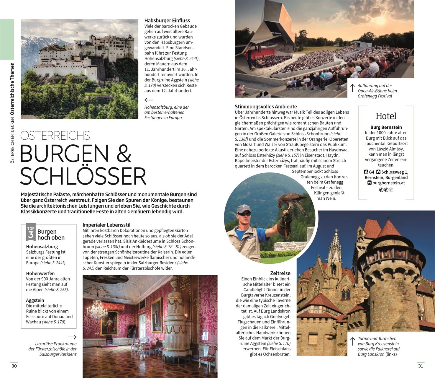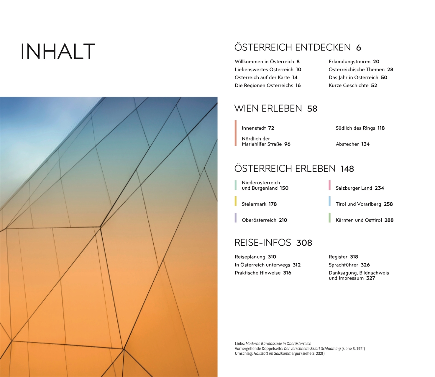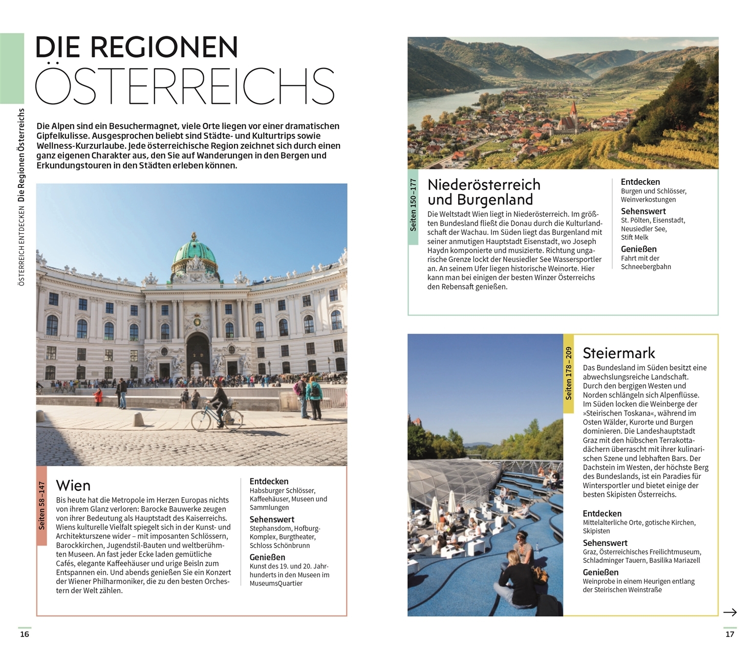 • Ausgewählte Top-Themen: Auf den bildgewaltigen Themenseiten des Österreich-Reiseführers stehen charakteristische Besonderheiten im Fokus. Hier kommen unter anderem Fans von Architektur, klassischer Musik und gutem Essen aber auch Natur- und Kunstliebhaber voll auf ihre Kosten.