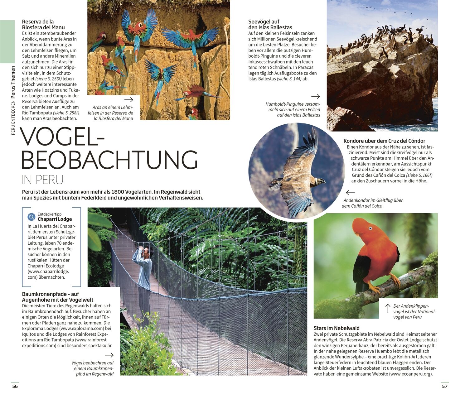 • Ausgewählte Top-Themen: Auf den bildgewaltigen Themenseiten des Peru-Reiseführers stehen charakteristische Besonderheiten im Fokus. Entdecken Sie das reiche Erbe der Inka oder die wunderbare Tierwelt des Amazonasbeckens, wandern Sie auf spektakulären Inka-Treks oder erhalten Sie Einblick in Perus kulinarische Landschaft, die genauso abwechslungsreich wie die Geografie des Landes ist.