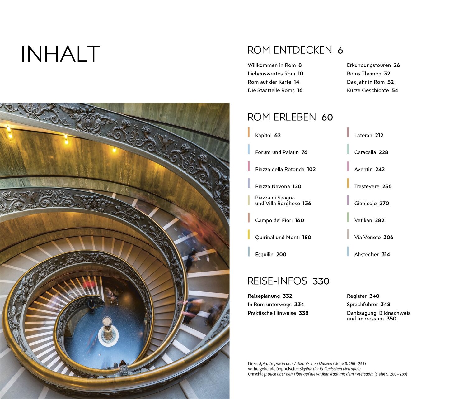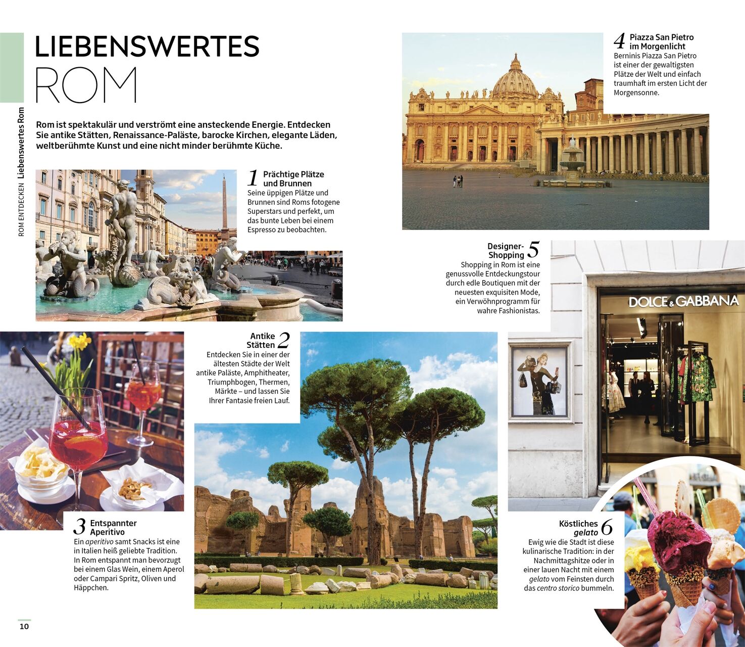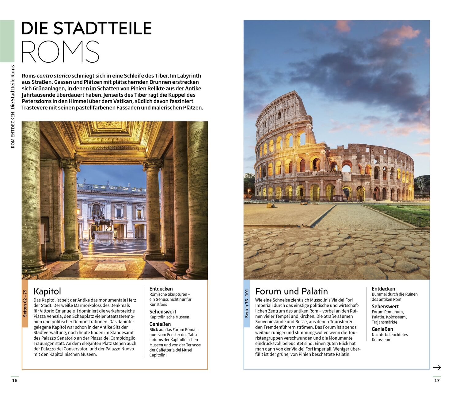 Die einzigartigen 3-D-Illustrationen der Vis-à-Vis Bände bieten Ihnen ganz neue Einblicke in berühmte Gebäude und Sehenswürdigkeiten, darunter Wahrzeichen wie die prächtige Basilika Santa Maria Maggiore und der majestätische Innenraum des Petersdoms. Mit den handgezeichneten Spaziergängen entdecken Sie die schönsten Orte verschiedener Stadtteile auf ganz besondere Art und Weise. Bildgewaltige Themenseiten rücken charakteristische Besonderheiten - wie die historische Architektur, bedeutende Meisterwerke der Kunstgeschichte oder das quirlige Nachtleben - in den Fokus.