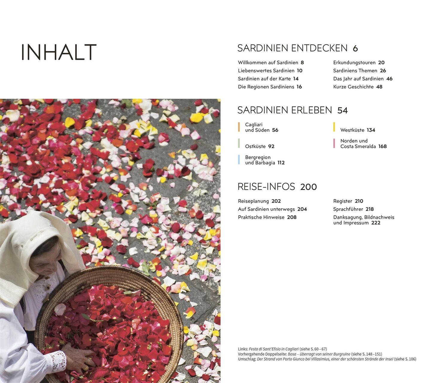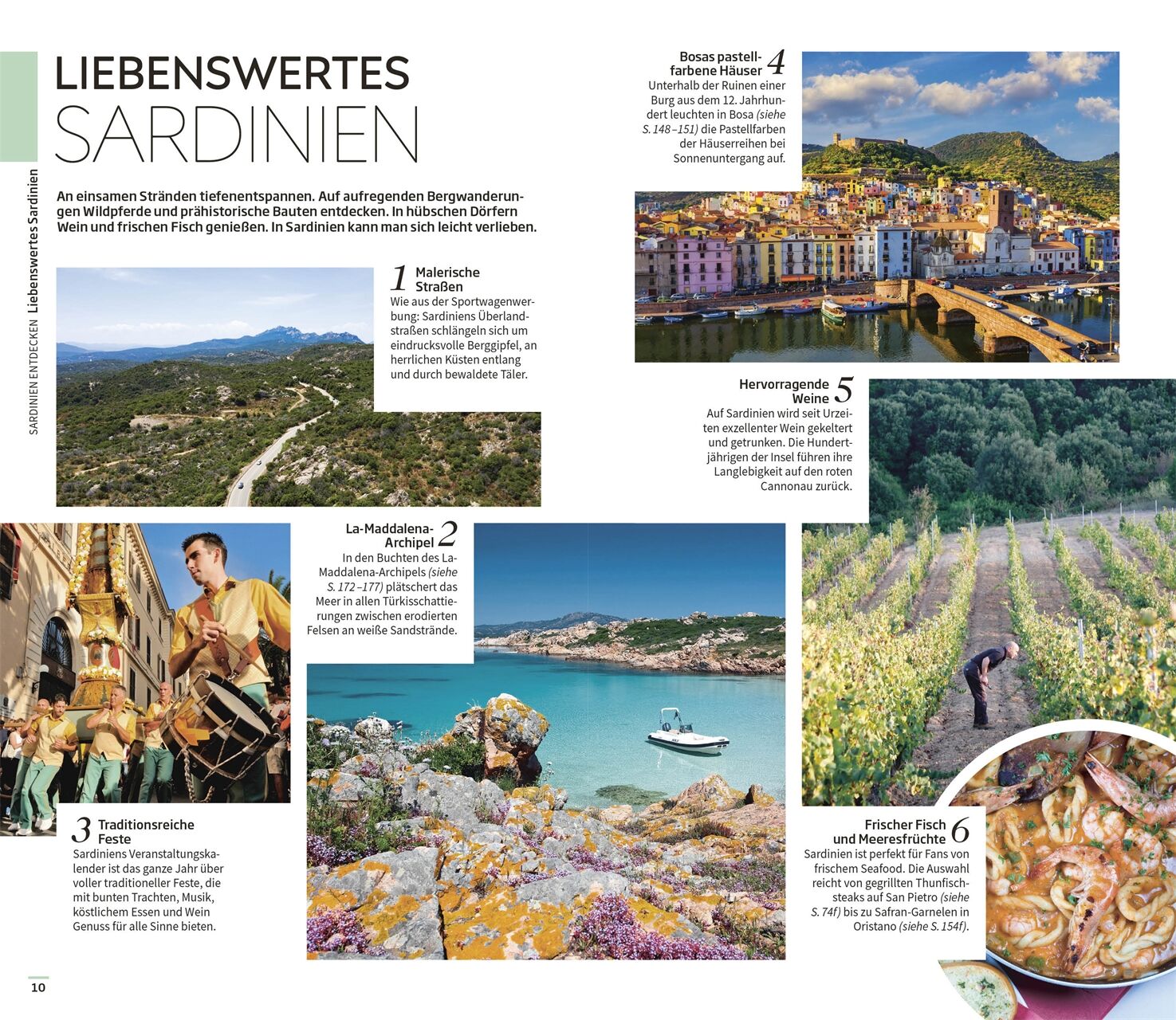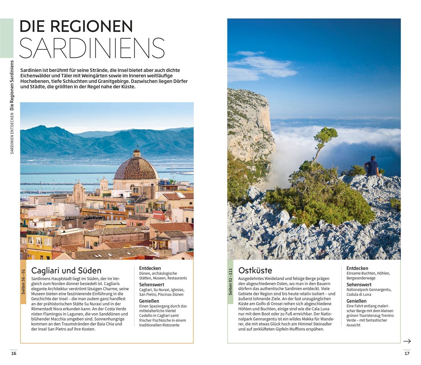 Die fabelhaftesten Gegenden stellen sich Ihnen im Reiseführer Sardinien in ihrer gesamten Pracht vor mit fundierten und qualitativen Inhalten sowie unvergesslichen Highlights aus Kultur und Alltag. Von der Region Norden und Costa Smeralda mit traumhaft gelegenen Buchten und türkisfarbenem Meer über die Westküste mit tausenden Flamingos, die in den Marschlandschaften überwintern, die Bergregion und die Barbagia, durch deren zerklüftete Berge die Pfade der Schafhirten führen, bis zur Ostküste mit hoch aufragenden Kalksteinklippen am Golfo di Orosei sowie Cagliari und Süden mit interessanten prähistorischen Stätten wie Nora und Su Nuraxi.