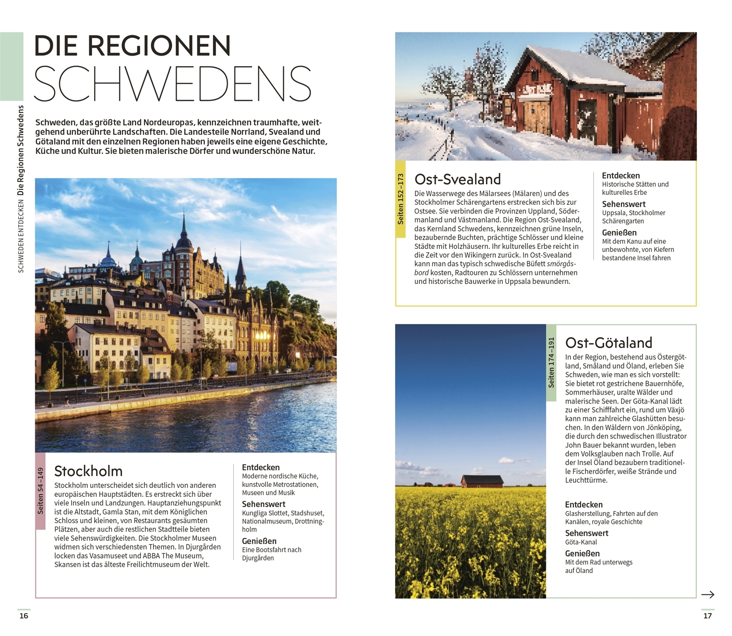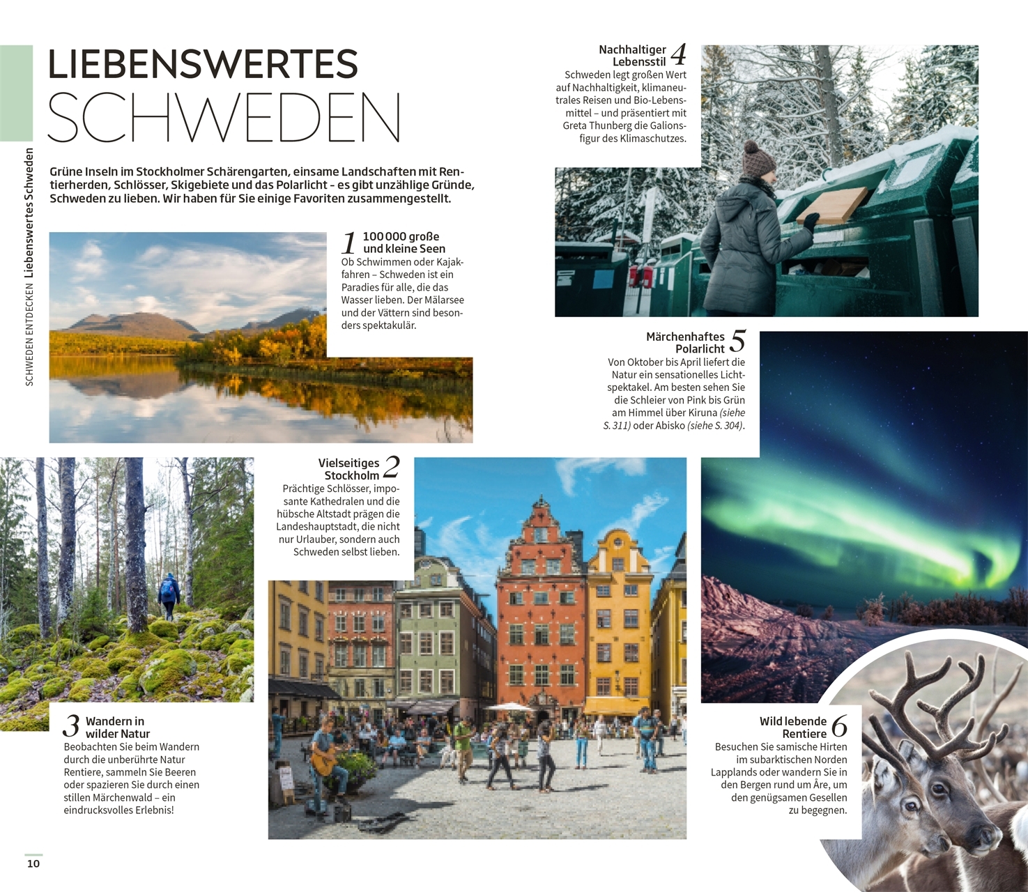 • Ausgewählte Top-Themen: Auf den bildgewaltigen Themenseiten des Schweden-Reiseführers stehen charakteristische Besonderheiten im Fokus. Erfahren Sie Wissenswertes über den schwedischen Lifestyle, die Architektur oder die schönsten Fotomotive.