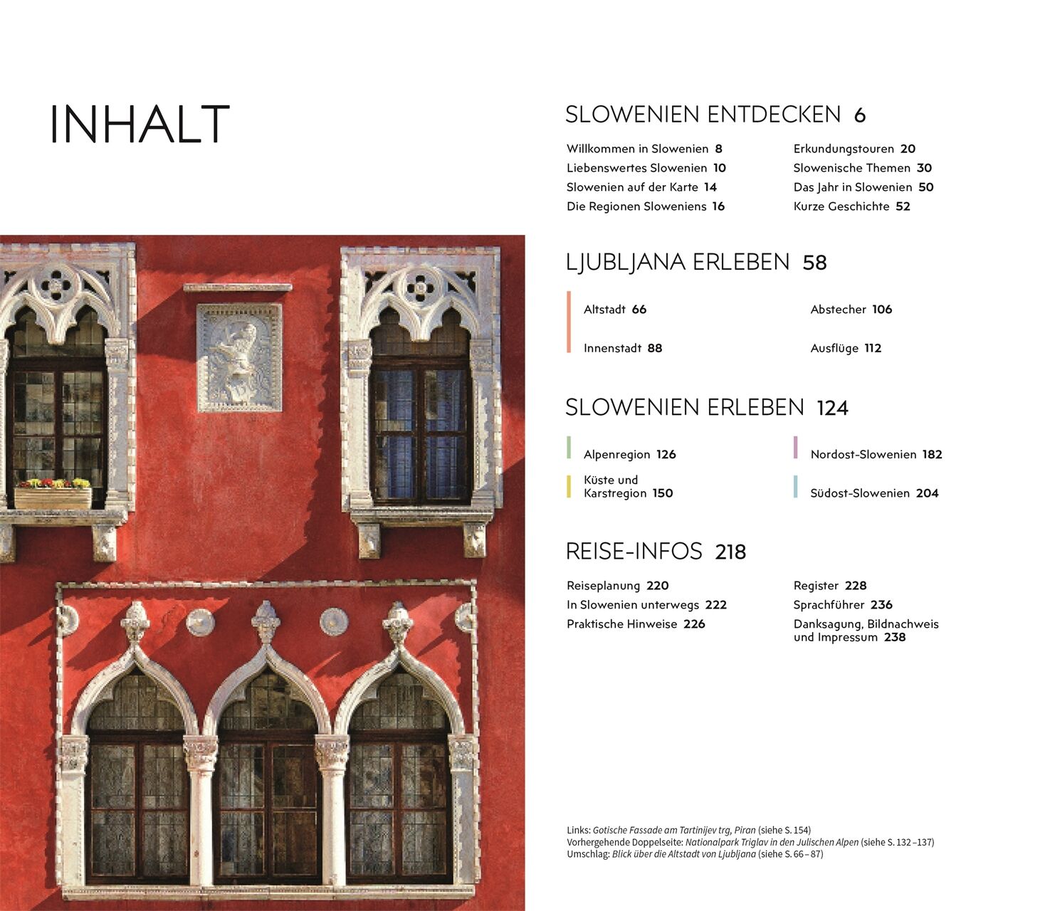 • Inspirierende Fotografien: Ob die fast unberührte Natur der Nationalparks, magische Kalksteinhöhlen oder mittelalterliche Burgen und historische Städte: Atmosphärische Sehnsuchtsbilder wecken Ihr Fernweh! Dank der wunderschönen und faszinierenden Fotos bringt Sie dieser Slowenien-Reiseführer gedanklich schon beim Durchblättern direkt ans Reiseziel.