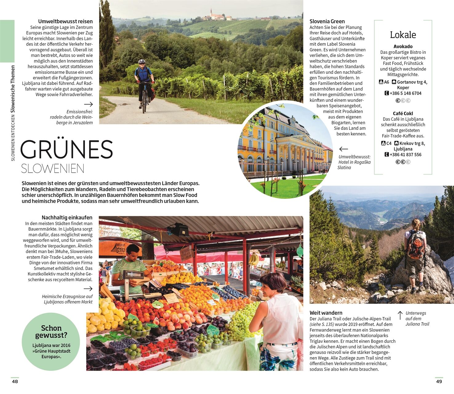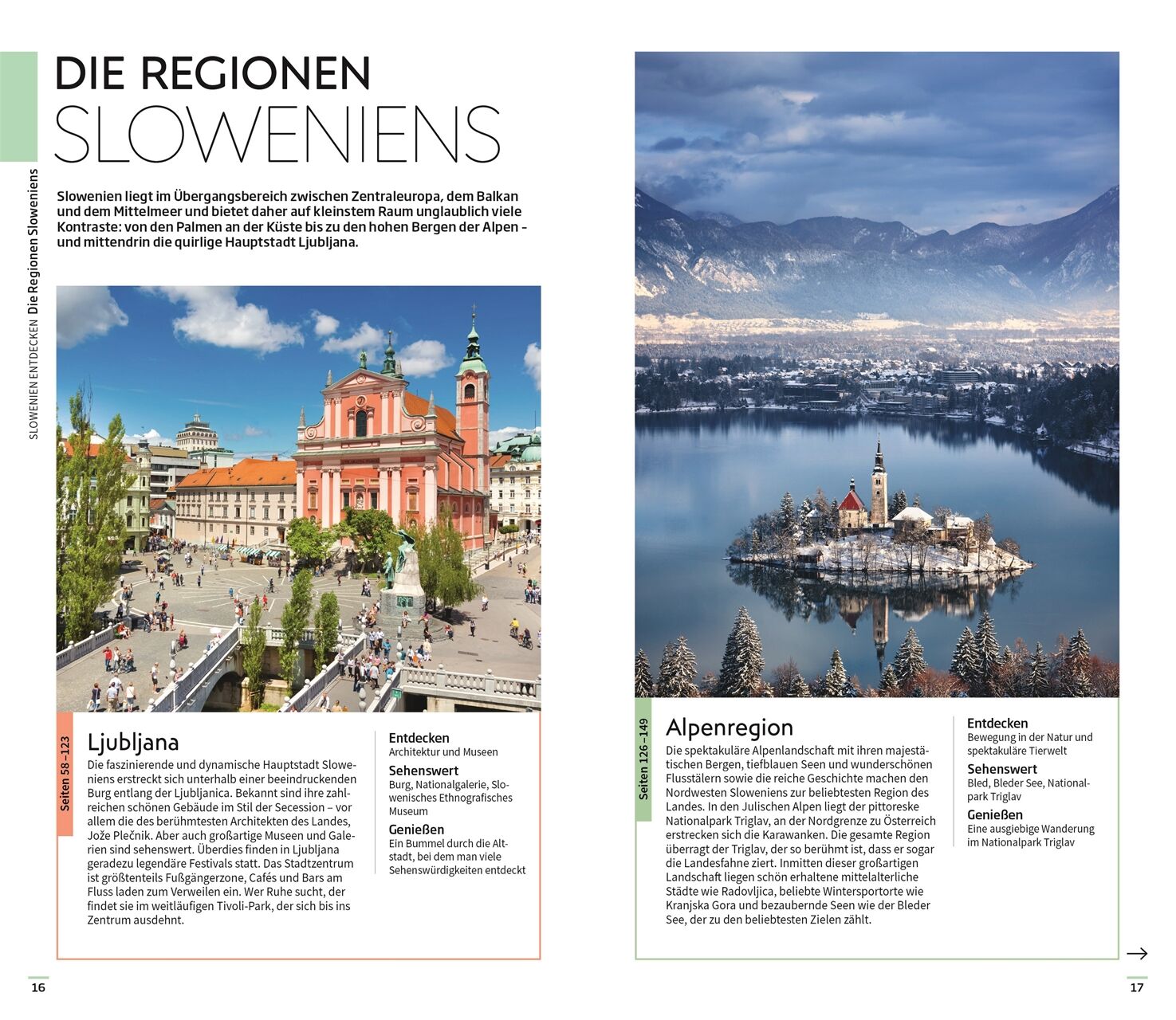 • Ausgewählte Top-Themen: Auf den bildgewaltigen Themenseiten des Slowenien-Reiseführers stehen charakteristische Besonderheiten im Fokus. Entdecken Sie Sloweniens abwechslungsreiche Architektur oder die Köstlichkeiten der slowenischen Küche. Auch Outdoor-Abenteurer, Kunstfans und Naturliebhaber kommen hier voll auf ihre Kosten.