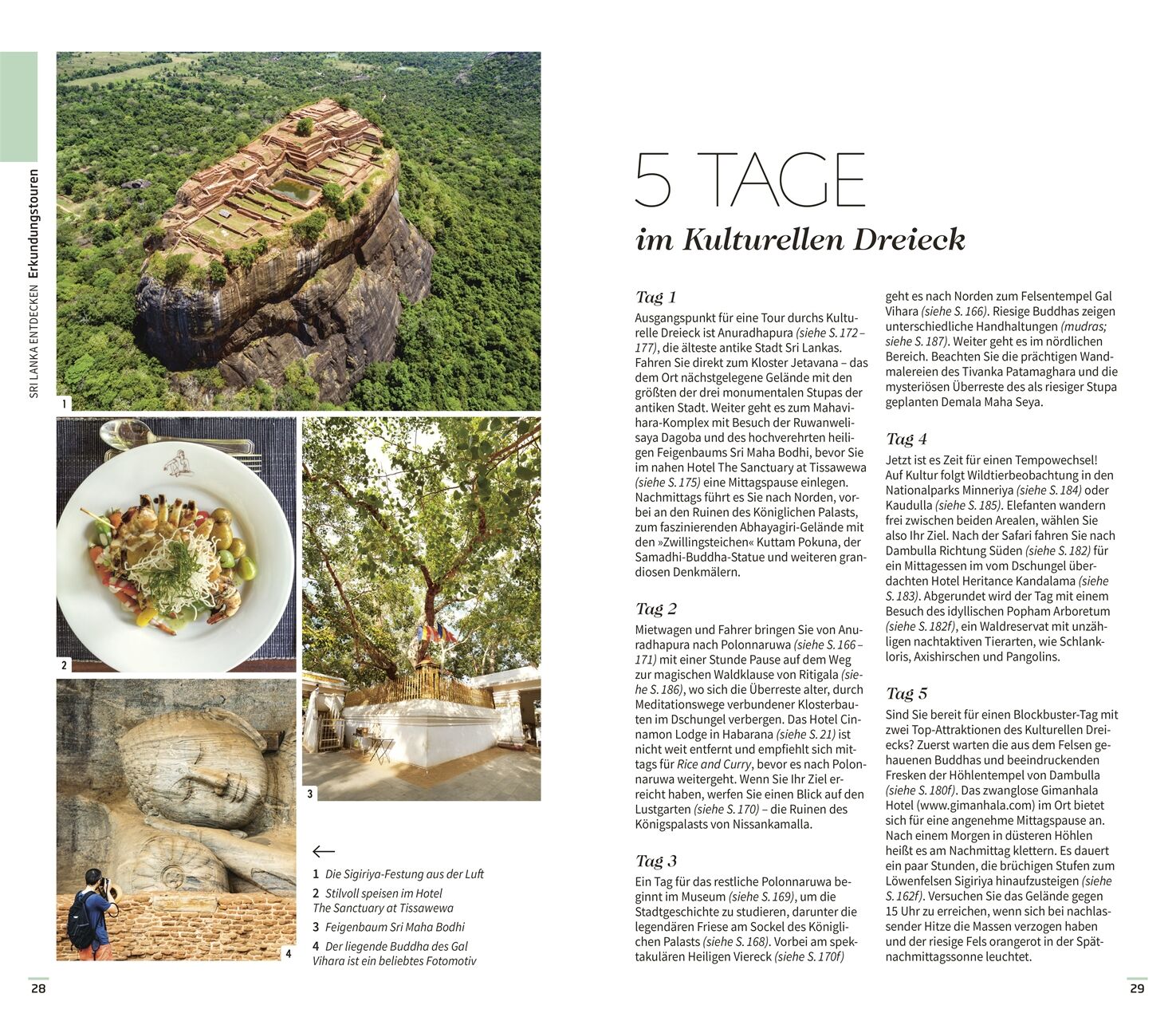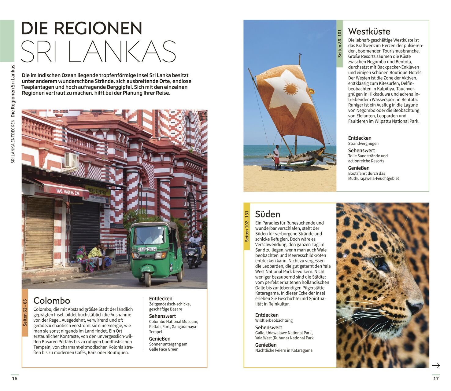 • Ausgewählte Top-Themen: Auf den bildgewaltigen Themenseiten des Sri Lanka Reiseführers stehen charakteristische Besonderheiten im Fokus. Erkunden Sie die atemberaubenden Strände, Tierwelt, Zugfahrten, Wassersport-Möglichkeiten und die schönsten Fotomotive für Fotofans in Sri Lankas. Auch Outdoor-Abenteuer-Fans, Foodies, Sport-Enthusiasten sowie Architektur-Begeisterte kommen hier auf ihre Kosten.