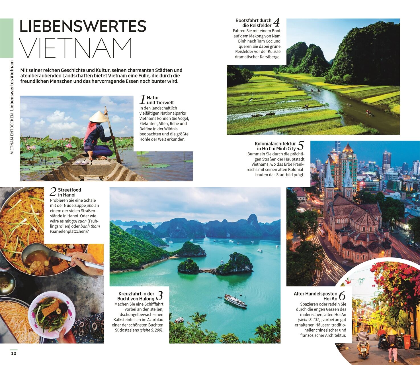 • Die schönsten Regionen: Die fabelhaftesten Gegenden stellen sich Ihnen im Reiseführer Vietnam Region für Region in ihrer gesamten Pracht vor mit fundierten und qualitativen Inhalten sowie unvergesslichen Highlights aus Kultur und Alltag. Von Nordvietnam mit endlos scheinenden Teefeldern und der wunderschönen Halong Bucht über das geschichtsträchtige Zentralvietnam mit einigen der berühmtesten archäologischen Stätten bis zum Mekong-Delta und Südvietnam, der Reisschüssel des Landes, das durch authentisches Landleben und schwimmende Märkte besticht. Nicht zu vergessen Hanoi, das kulturelle Herz Vietnams und die älteste Hauptstadt Südostasiens sowie das kosmopolitische Ho Chi Minh City mit seiner wechselvollen, lebendigen Geschichte.