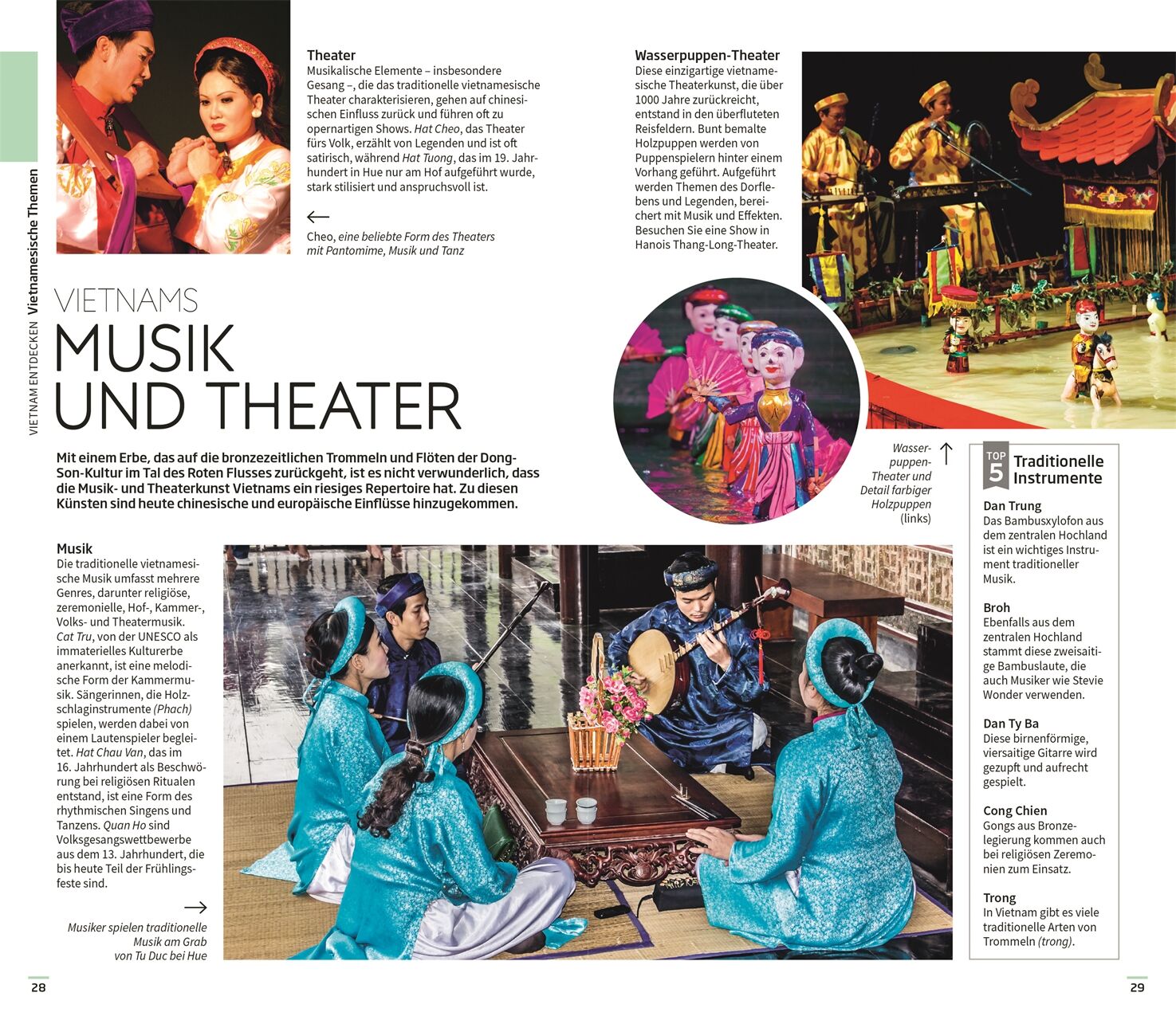 • Ausgewählte Top-Themen: Auf den bildgewaltigen Themenseiten des Vietnam-Reiseführers stehen charakteristische Besonderheiten im Fokus. Erhalten Sie Einblick in Vietnams Architektur mit Einflüssen aus China, Indien, dem alten Khmer-Reich und Frankreich, in die Musik- und Theaterkunst mit einem Erbe, das auf die bronzezeitliche Dong-Son-Kultur zurückgeht oder in die vietnamesische Küche mit seiner Vielfalt an frischen Kräutern.