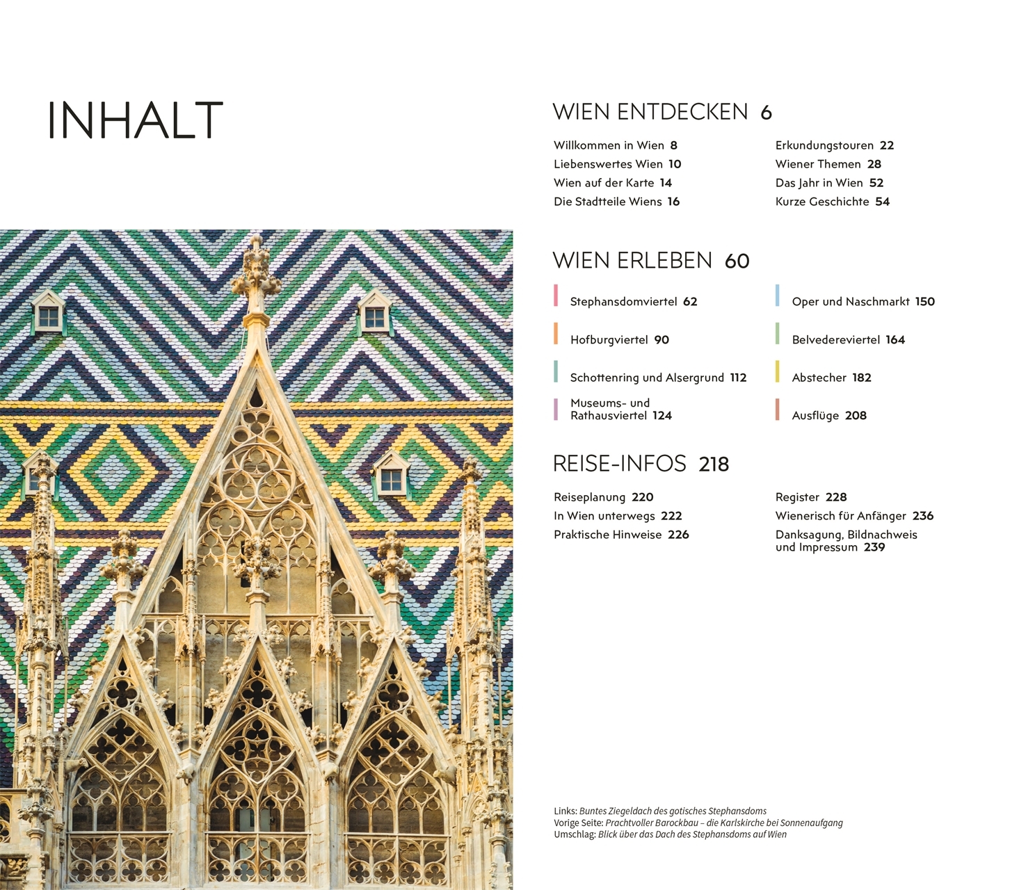 Absolute Highlights eröffnen die Stadtteilkapitel. Das Besondere: Statt sie nur zu beschreiben, werden sie in diesem Wien-Reiseführer großzügig in Szene gesetzt mit sensationellen 3-D-Aufrisszeichnungen, die jedes Detail aus der Vogelperspektive zeigen. Sie bieten ganz neue und einmalige Einblicke in die Sehenswürdigkeiten von der Kuppel der Karlskirche bis zum Burgtheater.