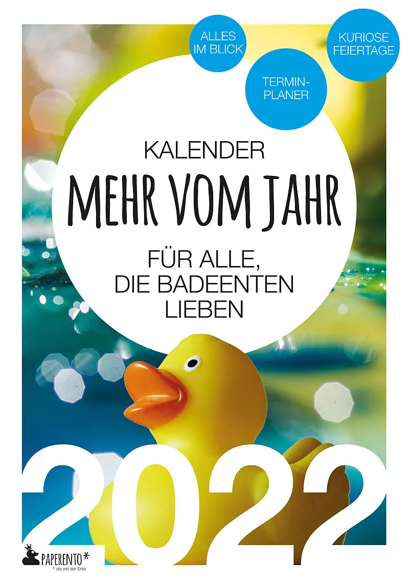 Ab in die Wanne! Und das Quietscheentchen kommt mit. Der Badeenten Kalender 2022 sorgt für die nötige Übersicht im Alltag und verspricht damit mehr Zeit für Entdeckungen. So haben Sie mehr vom Jahr. Endlich Durchblick: Das übersichtliche Kalenderbuch im Format...