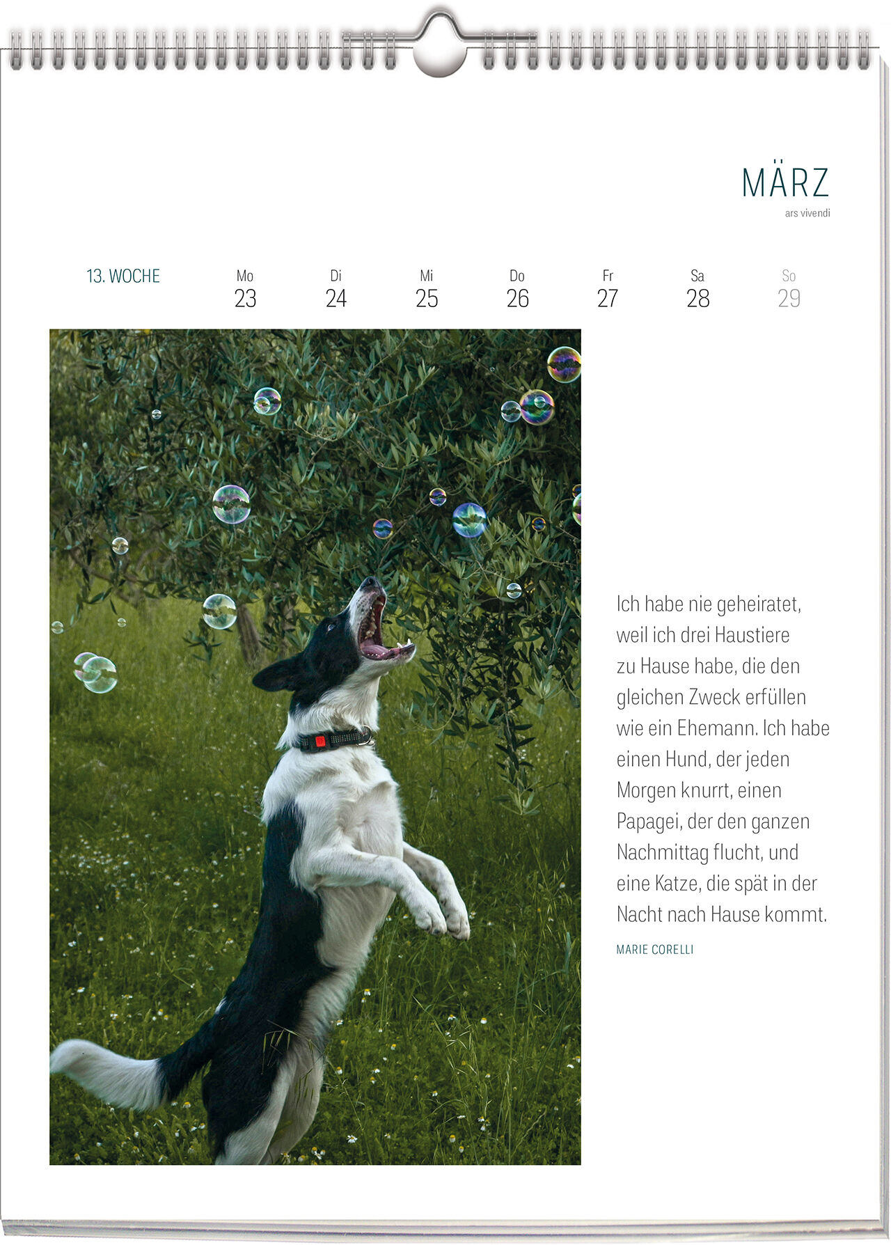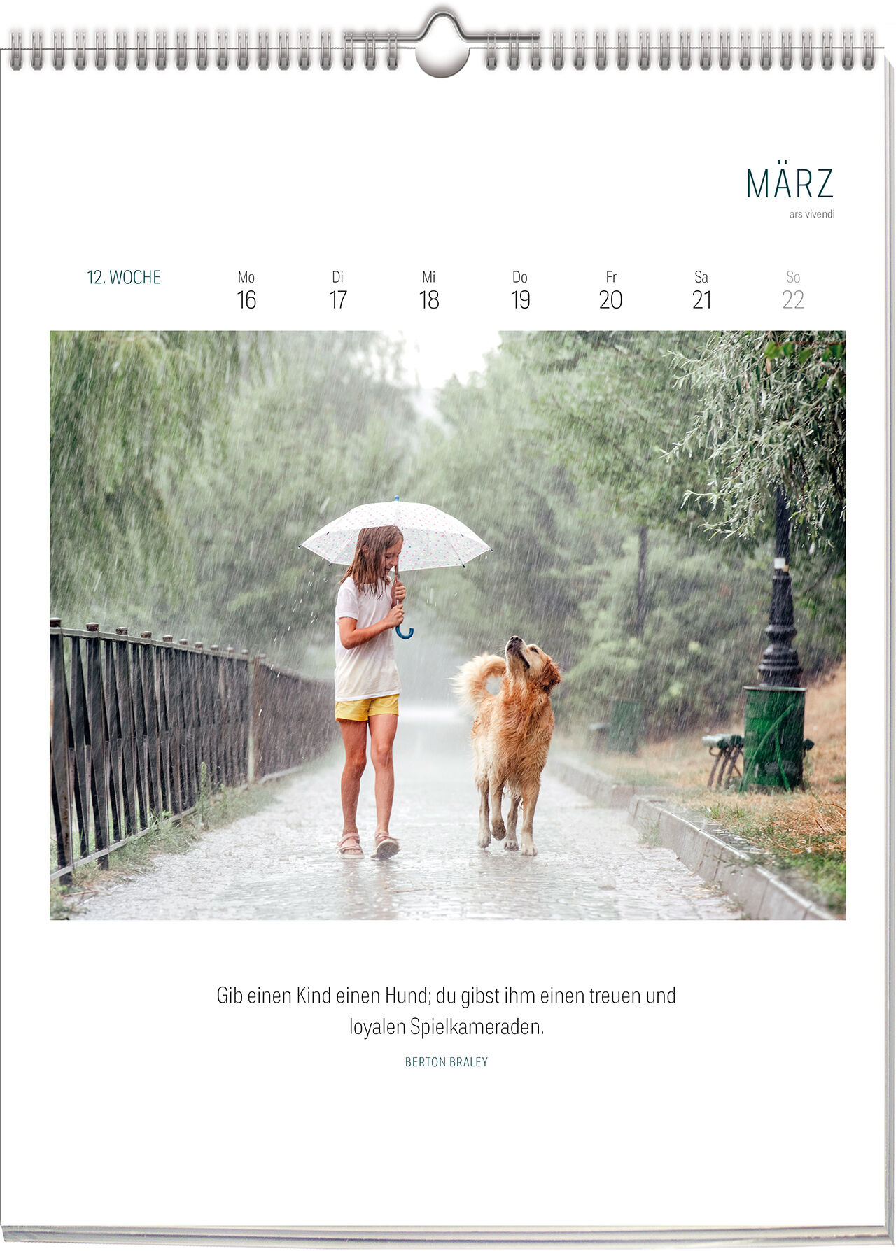 Humorvoll und berührend setzt dieser Kalender Woche für Woche den besten Freund des Menschen mit faszinierenden Aufnahmen und poetischen Zitaten in Szene. Bewährte Kalender-Qualität von ars vivendi: - Herstellung, Druck und Verarbeitung in Deutschland - 53 Ka...