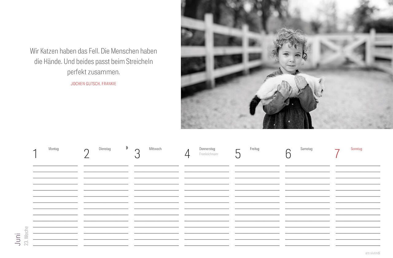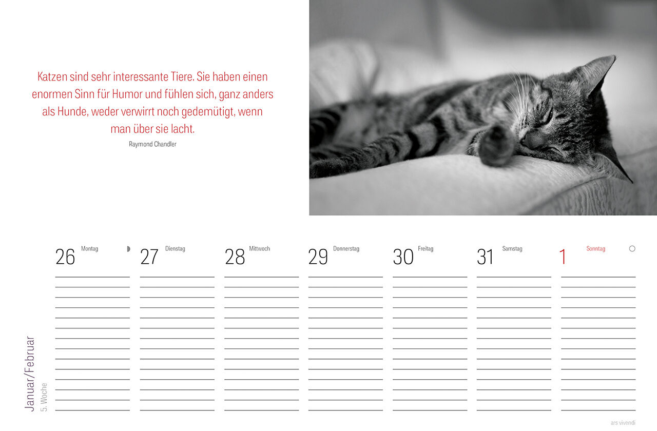 Begleitet von neugierigen Samtpfoten und einem wachsamen Blick wird kein Termin mehr verschwitzt. Leichtfüßig und perfekt organisiert durch die Woche inspiriert von literarischen Katzenzitaten! Bewährte Kalender-Qualität von ars vivendi: - Herstellung, Druck ...
