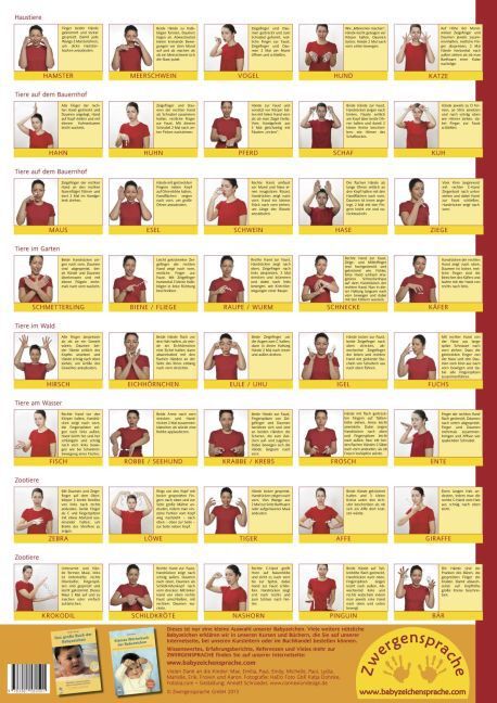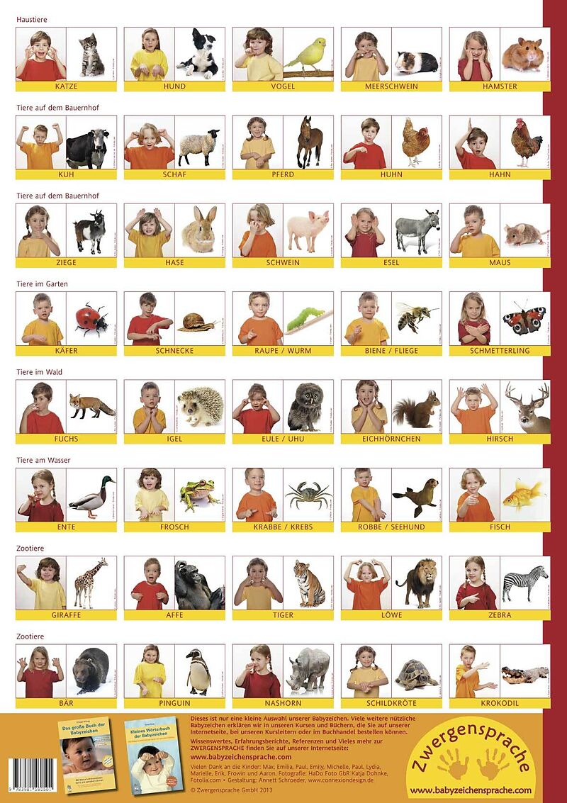 Zum Lieblingsthema vieler Kinder Tiere bietet dieses Plakat mit 40 Kindergebärden (auch Babyzeichen oder Babygebärden genannt) immer wieder Gesprächsstoff für zu Hause, für den pädagogischen Alltag in Kindereinrichtungen oder Praxen. Es eignet sich auch als Ge...