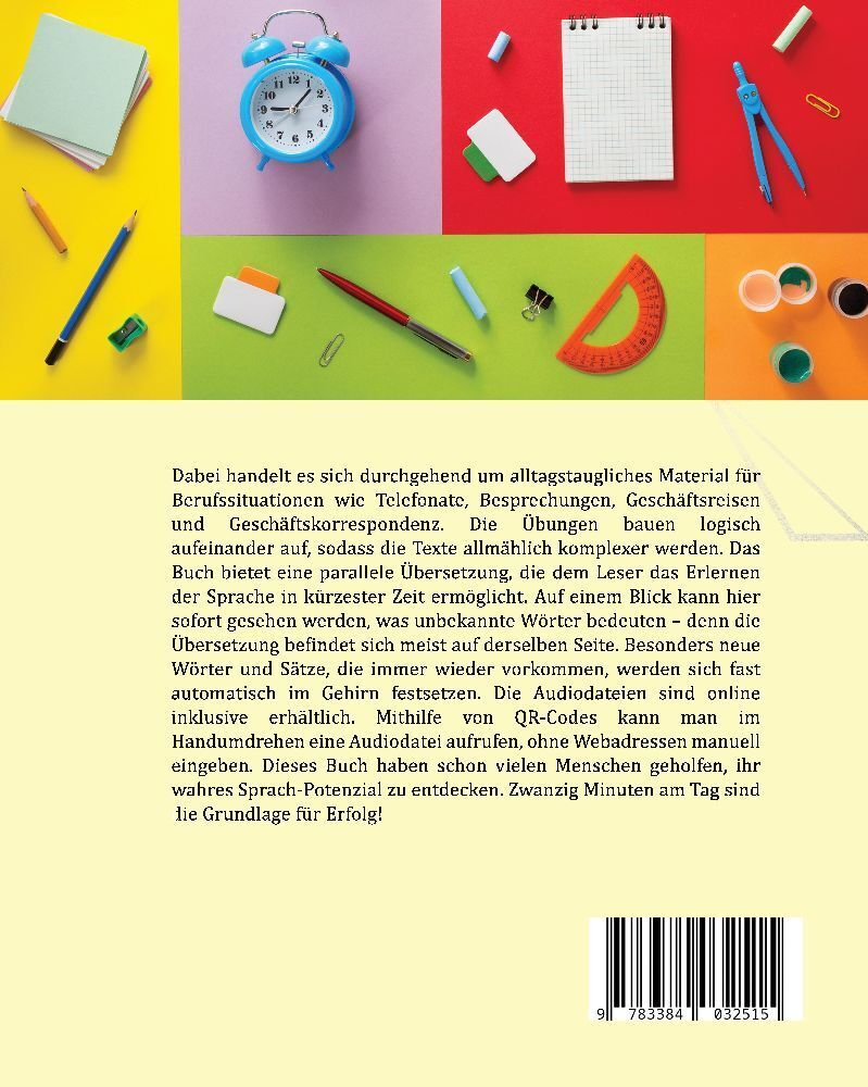 Dabei handelt es sich durchgehend um alltagstaugliches Material für Berufssituationen wie Telefonate, Besprechungen, Geschäftsreisen und Geschäftskorrespondenz. Die Übungen bauen logisch aufeinander auf, sodass die Texte allmählich komplexer werden. Das Buch b...