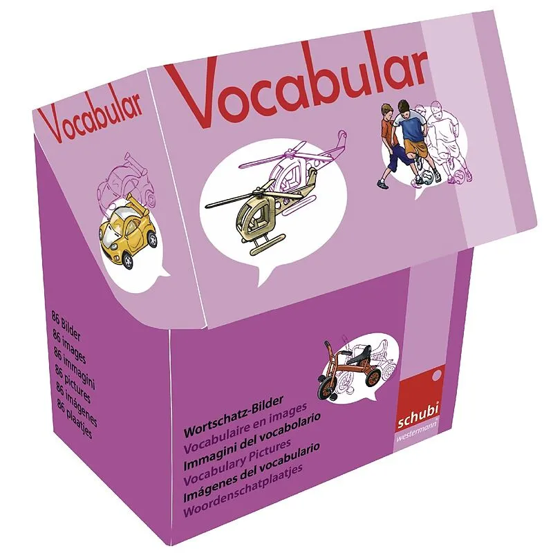 SCHUBI Vocabular stellt mit der Wortschatz-Themenreihe ein umfangreiches Material in drei Modulen zur Verfügung, das in vielen Bereichen eingesetzt werden kann: Ob beim Erlernen der Muttersprache, beim Lernen von Fremdsprachen oder von Deutsch als Zweitsprach...
