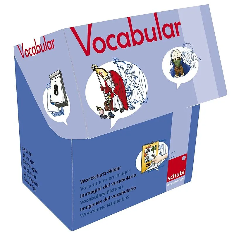 Die farbigen VOCABULAR Wortschatz-Bilder in der Klappbox eignen sich zur Sprachförderung in allen Altersstufen, zur Erarbeitung des Wortschatzes im frühen Fremdsprachenunterricht in der Schule, aber auch für die Sonderpädagogik, die Sprachtherapie und die Arb...