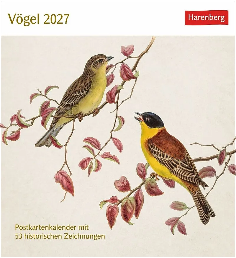 Vögel Postkartenkalender 2027 - Postkartenkalender mit 53 historischen Zeichnungen