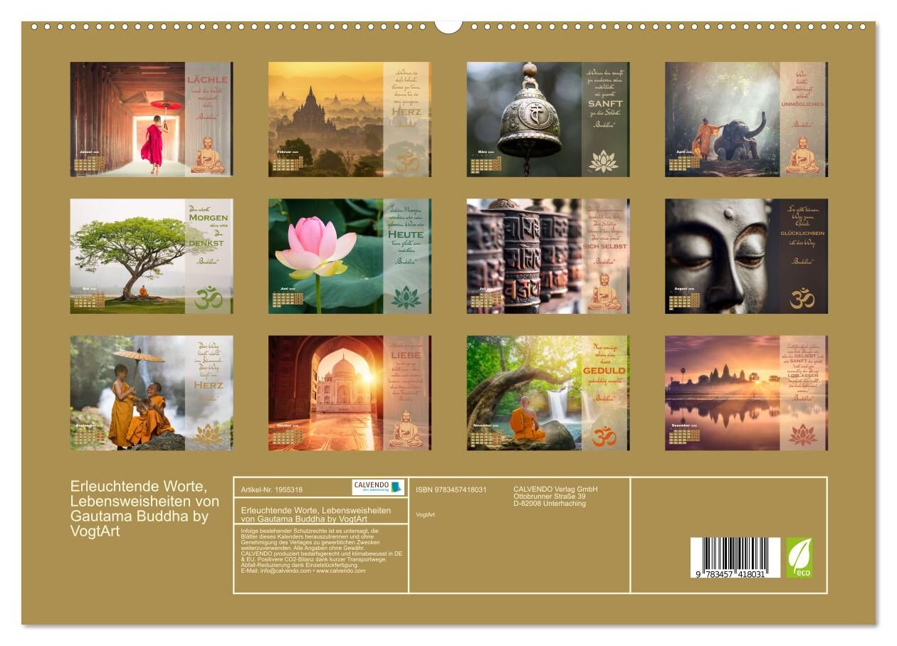 Erleuchtende Worte, Lebensweisheiten von Gautama Buddha by VogtArt (hochwertiger Premium Wandkalender 2026 DIN A2 quer), Kunstdruck in Hochglanz