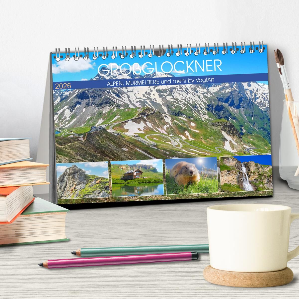 Großglockner, Alpen, Murmeltiere & mehr by VogtArt (Tischkalender 2026 DIN A5 quer), CALVENDO Monatskalender