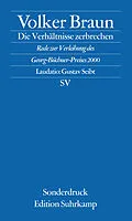 Ich habe Vorjahren, unter anderen Verhältnissen, Büchner zitiert, um einen Sprengsatz zu legen; jetzt in seinem Namen herzitiert zu sein, muß mich wieder unterminieren. Ich stehe vor Ihnen auf dem gefährlichen Boden, wo man Stellung bezieht, wo Absichten wurze...