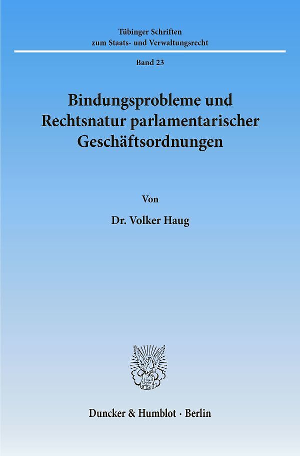 Bindungsprobleme und Rechtsnatur parlamentarischer Geschäftsordnungen.