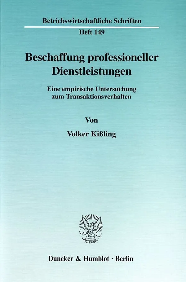 Die Beschaffung professioneller Dienstleistungen ist ein bislang sowohl theoretisch als auch empirisch wenig bearbeitetes Forschungsgebiet an der Schnittstelle von Dienstleistungs- und Business-to-Business-Marketing. Ziel der vorliegenden Arbeit ist es, dieses...