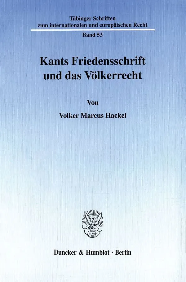 Kaum eine philosophische Schrift hat in der Völkerrechtsliteratur so viel Beachtung gefunden wie Immanuel Kants »Zum ewigen Frieden« aus dem Jahre 1795. Hackel befaßt sich zunächst mit der Interpretation der Friedensschrift, wobei auf die für das Völkerrecht e...Kaum eine philosophische Schrift hat in der Völkerrechtsliteratur so viel Beachtung gefunden wie Immanuel Kants »Zum ewigen Frieden« aus dem Jahre 1795. Hackel befaßt sich zunächst mit der Interpretation der Friedensschrift, wobei auf die für das Völkerrecht entscheidende Frage nach der rechtlichen Gestaltung der internationalen Beziehungen besonderes Gewicht gelegt wird. Die Interpretation zeichnet ein kontingentes Gesamtbild des Kantschen Ansatzes; damit wird eine Lücke in der Literatur geschlossen, die sich bisher auf die Betrachtung einzelner Aspekte beschränkt hat. Kernstück der Friedensschrift sind die drei Definitivartikel, in welchen Kant die republikanische Staatsverfassung, den Föderalismus freier Staaten und das Weltbürgerrecht als Bedingungen eines dauerhaften Friedens herausarbeitet. Im zweiten Teil der Arbeit werden die Wirkungen der Friedensschrift auf das positive Völkerrecht und die Völkerrechtslehre unterschiedlicher Epochen untersucht. In jeder Epoche haben sich völkerrechtliche Publikationen mit der Friedensschrift befaßt. Kant dient manchen Autoren als Diskussionspartner, anderen als bloße Autorität, mit deren Namen man den eigenen Ansichten Nachdruck zu verleihen sucht. Zu regelrechten Wellen ausgeprägter Beschäftigung mit der Friedensschrift kam es im Zusammenhang mit der Friedensbewegung des 19. Jahrhunderts und in der Zeit des Völkerbundes. Seit dem Ende des Kalten Krieges ist eine Renaissance des Interesses für Kant zu beobachten. Zu den aktuellen Fragen der internationalen Beziehungen, die unter Auseinandersetzung mit seinen Ideen erörtert werden, zählen die Durchsetzung der Menschenrechte, die Reform der Vereinten Nationen und die europäische Integration.