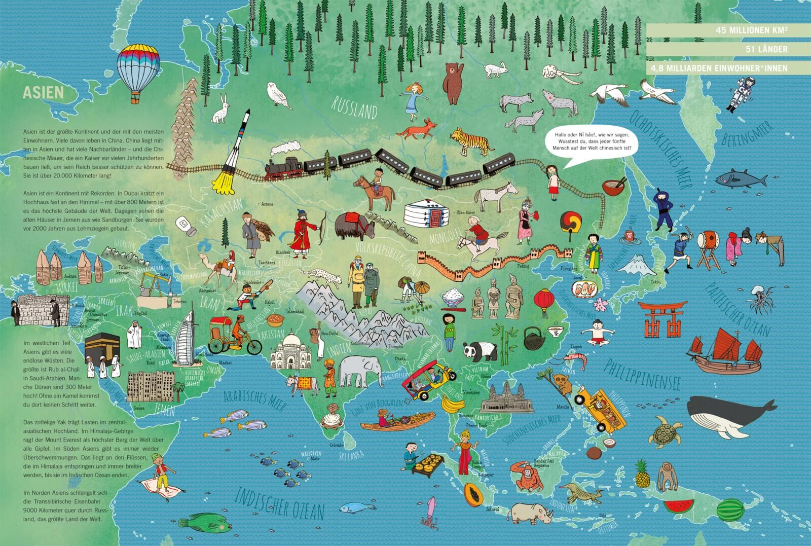 Mein großer Weltatlas In 16 Seiten um die Welt: Willst du wissen welche Tiere in den Wäldern Nordeuropas leben oder wie sich sich die Maori in Australien begrüßen? Und hast du schon mal etwas vom Popocatépetl gehört? Dieser Atlas zeigt dir, wie wunderschön und...